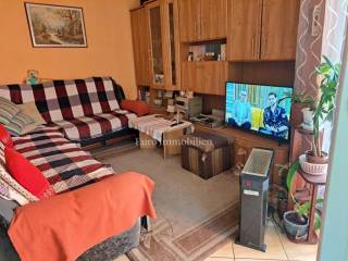 The apartment of 38.50 m2 is located on the 1st floor of a residential building with 6 apartments. It consists of a living room with a kitchen and dining room, one bedroom, a bathroom, a covered terrace of 7.80 m2, and an unfurnished auxiliary space of 44.60 m2 in the attic. It has a parking space and a garden of 30 m2. Heating is via air conditioning and a wood stove. Apartment is sold furnished.