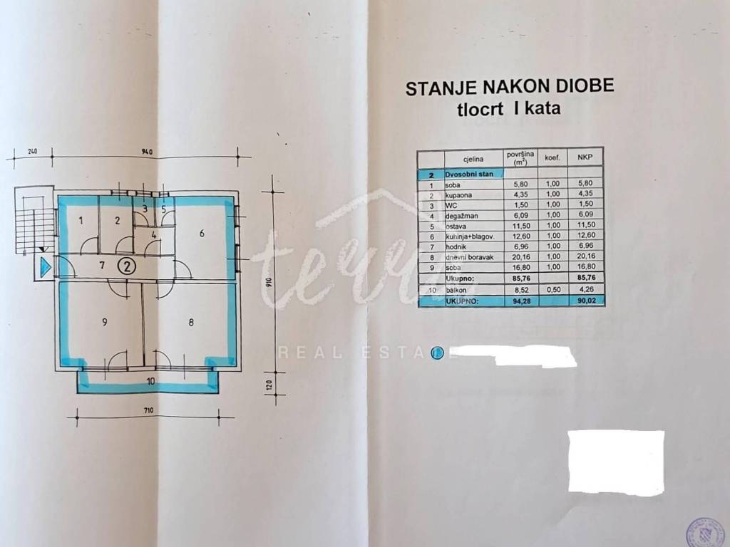 In one of the most sought-after locations in Crikvenica, just 60 meters from the sea and beautiful beaches, a spacious apartment is for sale, combining comfort, functionality, and an attractive position. The apartment of 90 m² is located on the 1st floor of a house and consists of a kitchen with pantry, spacious living room, bathroom and separate WC, hallway, two bedrooms, and a balcony with a stunning open sea view.