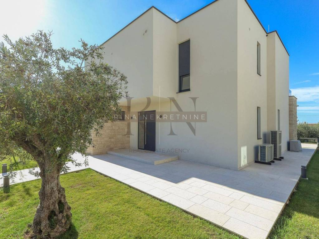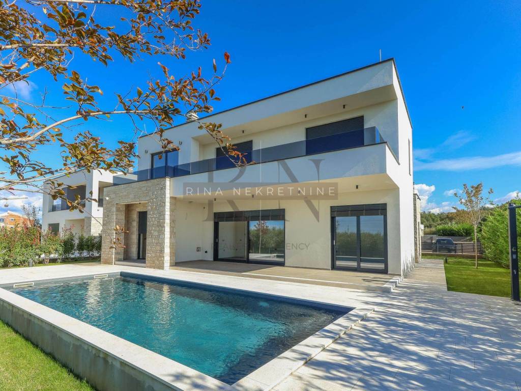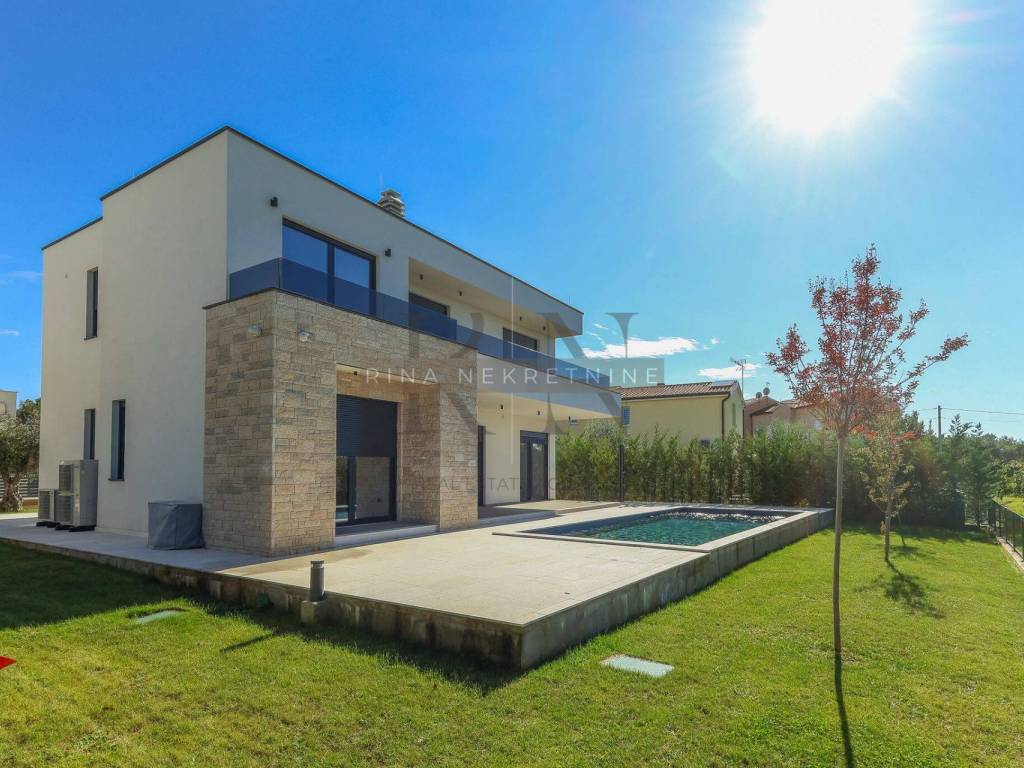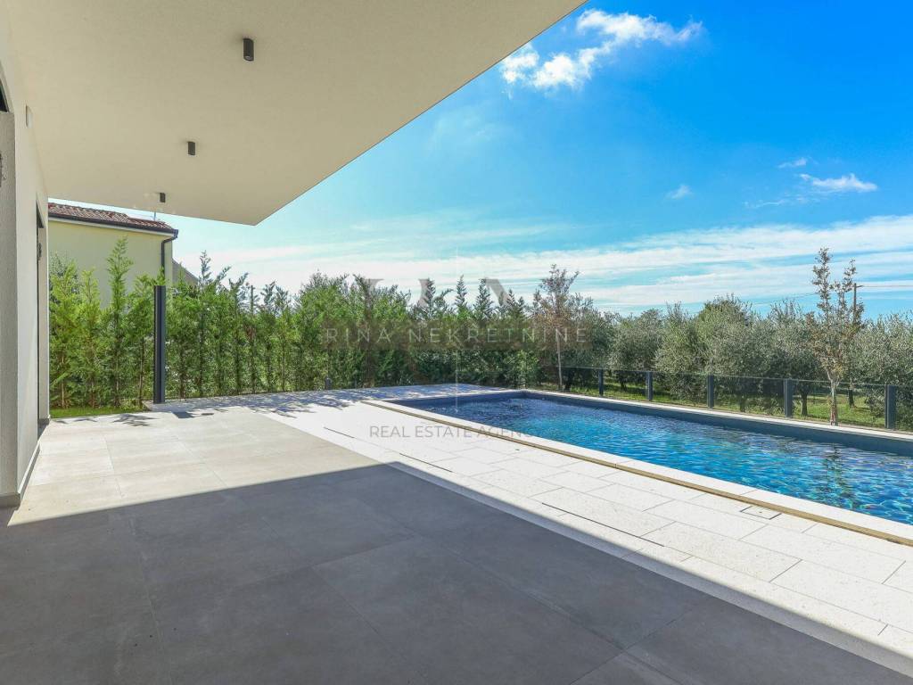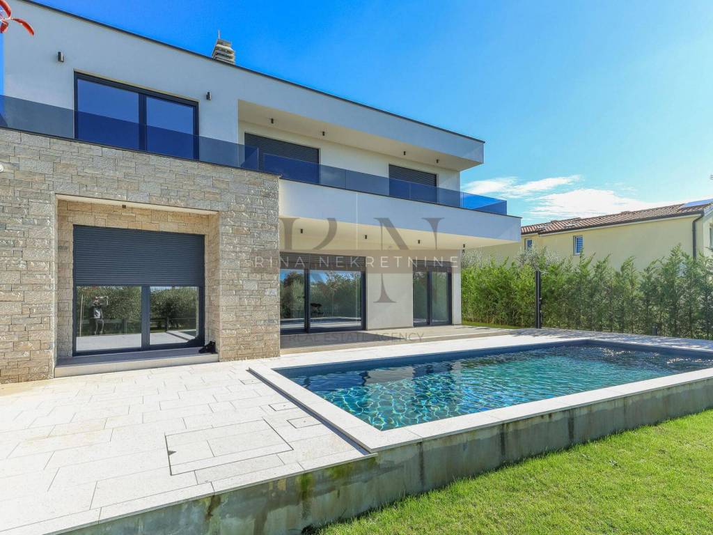 For sale: Detached luxury villa near Poreč In an attractive location, just 4 km from the center of Poreč, this exclusive detached villa is situated with a stunning view of the sea and nature. This property represents a perfect blend of modern design, top-quality construction, and a luxurious lifestyle.