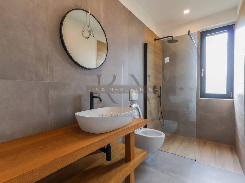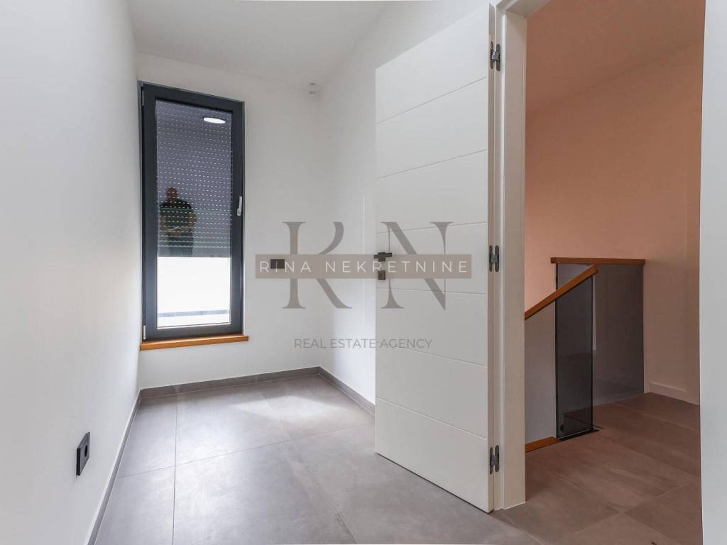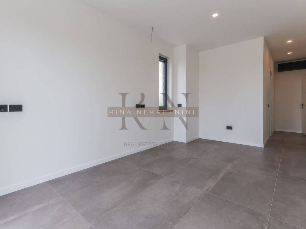 Heating: heat pump + underfloor heating Cooling: air conditioning in all rooms Insulation: 10 cm styrofoam and XPS Joinery: aluminum with thermal glass Sanitary ware: high-quality modern fittings Roof: flat roof with advanced drainage system Floors: combination of stone and high-quality ceramics