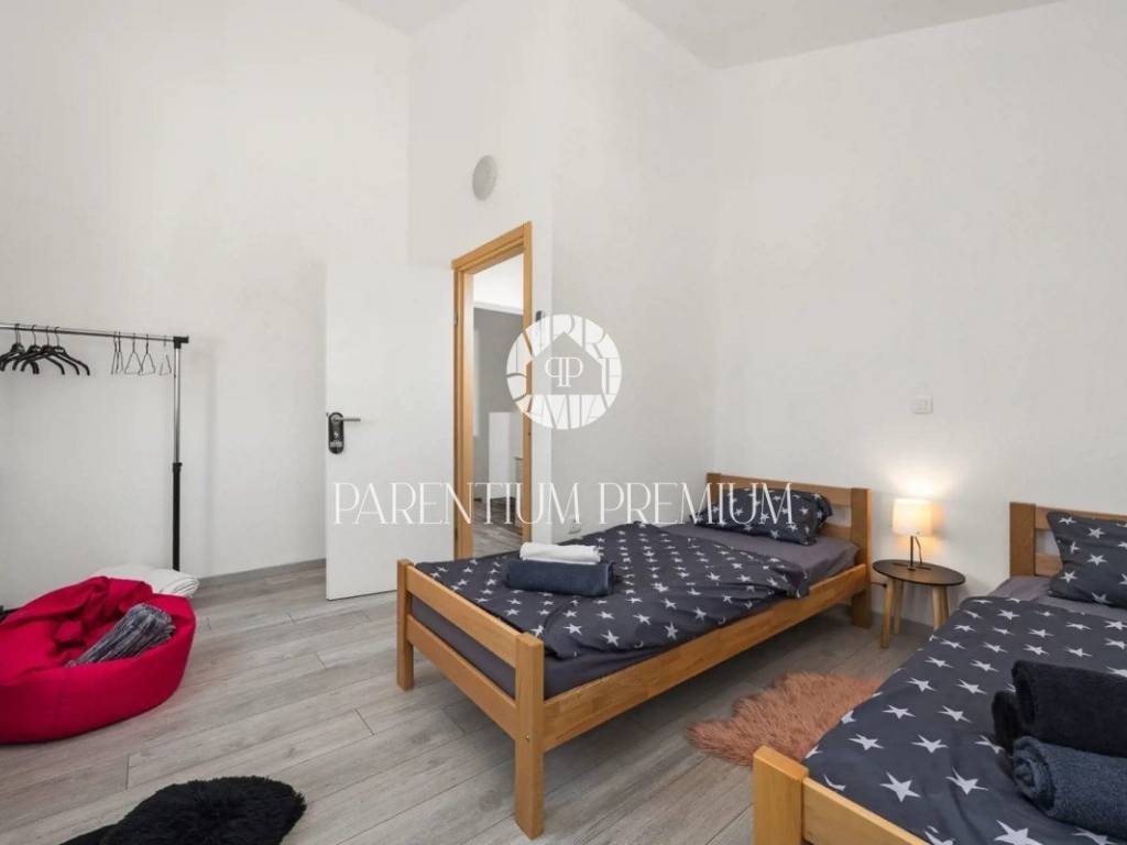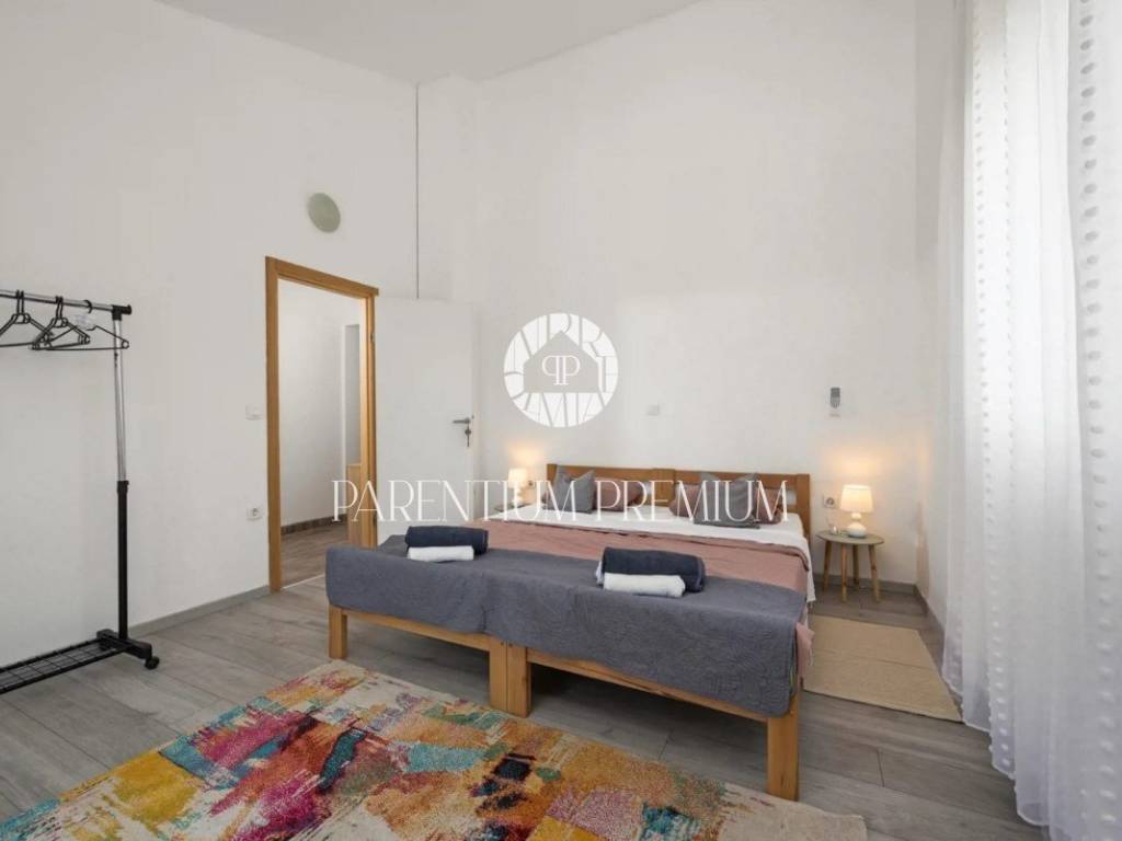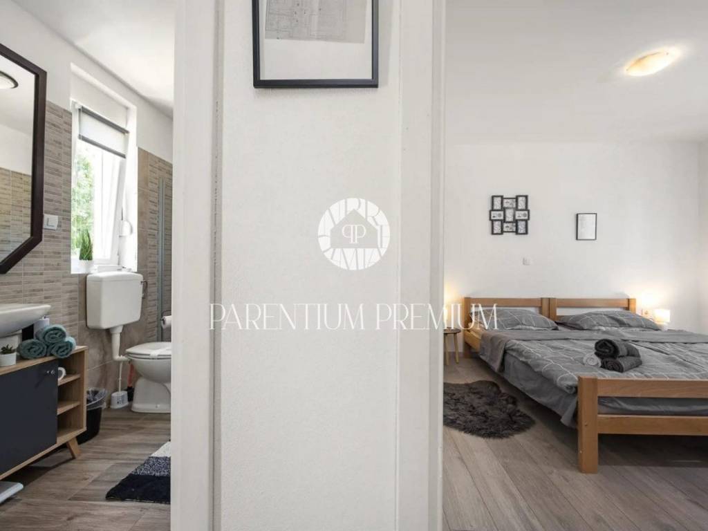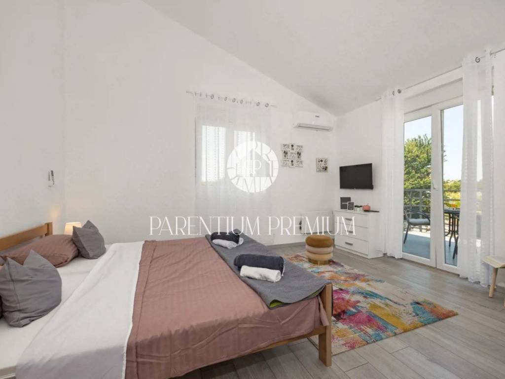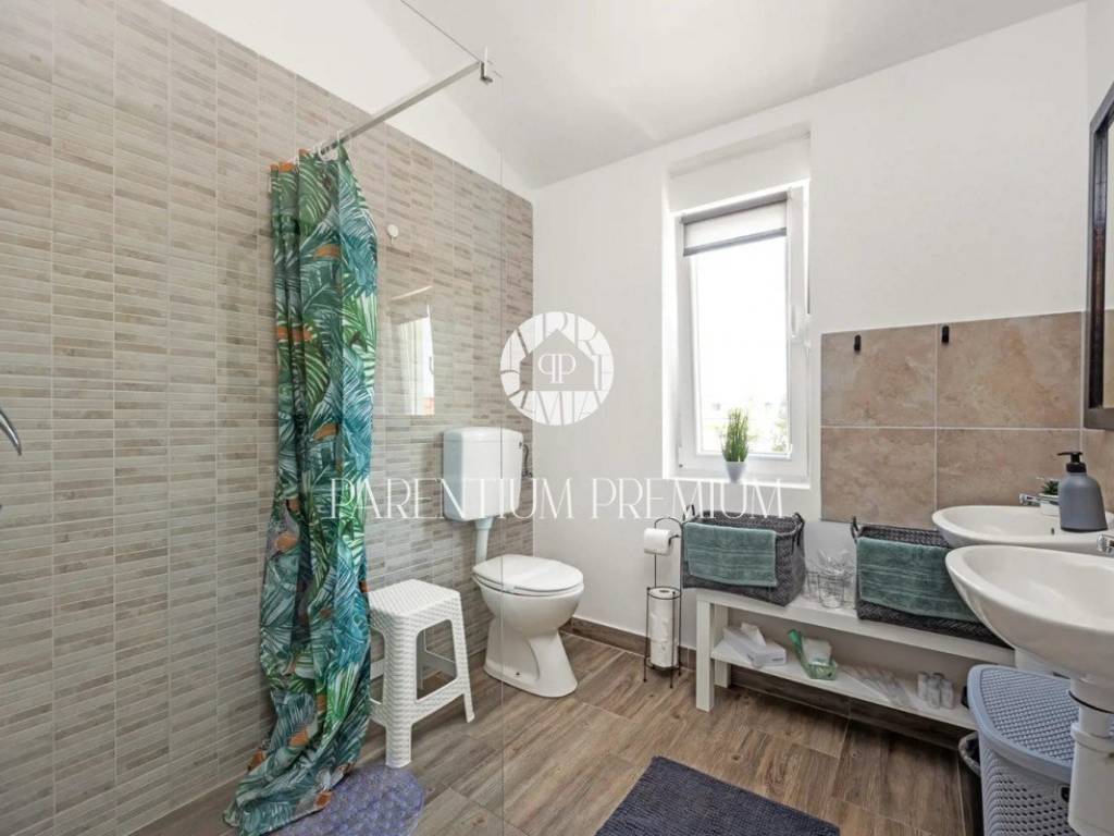 The house has a total area of 170m2 and consists of an open living room in which there is an equipped kitchen and dining room with exits to the terrace and yard, as well as the swimming pool and sunbathing area located on that side of the house. on the ground floor we have another bedroom and bathroom. There are 3 bedrooms on the first floor of the house, 1 of which has its own bathroom and exit to the terrace, with another additional bathroom in the hallway.