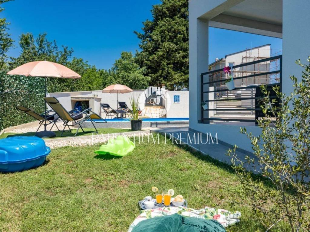 This new, beautifully decorated and fully equipped house with a swimming pool is located near Poreč in a quiet location not far from the main road and the Istrian Epsilon.