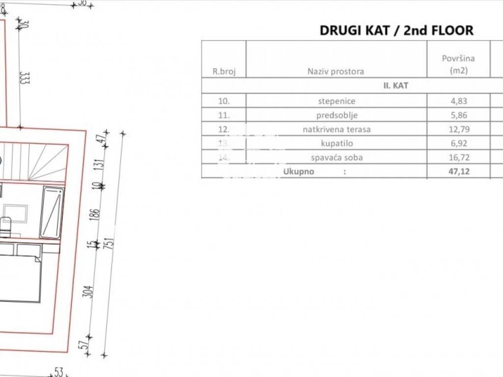 A semi-detached house with a total net area of 126.10m2, which extends over 3 floors, is for sale in a quiet place near the town of Poreč. The ground floor consists of an entrance hall, a storage room, a toilet and a kitchen with a dining room and a living room. The first floor consists of 2 bedrooms and a bathroom. The second floor consists of a bedroom, a bathroom and a terrace of 12.79m2. Underfloor heating is installed throughout the house. The house has 2 parking spaces. This semi-detached house is an ideal solution to the housing issue or as an investment for tourist purposes.