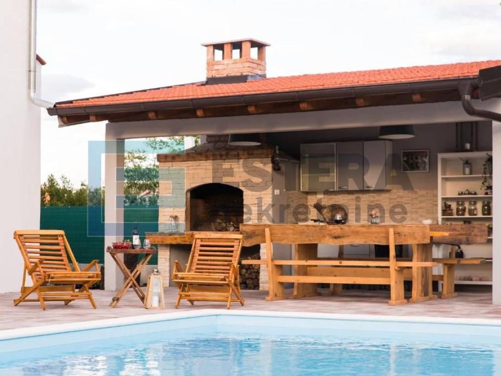 U dvorištu se pored bazena nalazi i opremljena ljetna kuhinja sa prostorom za sjedenje.