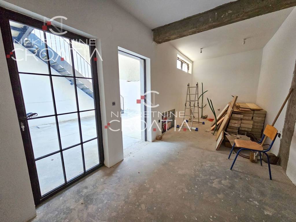 Predviđena mogućnost dva poslovna prostora u prizemlju, a kat i potkrovlje predviđeni za stanovanje.