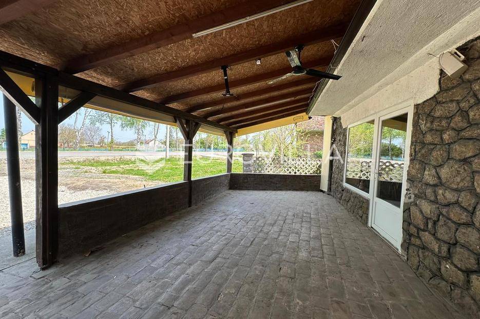 U mirnom dijelu Sotina, s pogledom na lokalni nogometni teren, nalazi se kuća s poslovnim prostorom i velikom parcelom od 3.675 m².Na katu se nalazi funkcionalan stambeni prostor koji uključuje dnevni boravak i spavaću sobu s izlazom na balkon, dječju sobu, kuhinju sa špajzom, kupaonicu te dodatne ostave i hodnik.Prizemlje je uređeno kao poslovni prostor (kafić), uz dodatni skladišni prostor i jednu odvojednu sobu te podrum, što ovu nekretninu čini idealnom za kombinaciju stanovanja i poslovanja.Velika okućnica i oranica nude dodatne mogućnosti – od privatnog korištenja do investicije.Grijanje je plinsko uz dodatnu opciju grijanja na drva.Poslovni prostor ima odvojeno brojilo struje, dok je voda zajednička.Nekretnina ima građevinsku i uporabnu dozvolu, a energetski certifikat je u izradi.Za sva dodatna pitanja, stojimo na raspolaganju.... Više na eurovilla.hr, ID: 335416