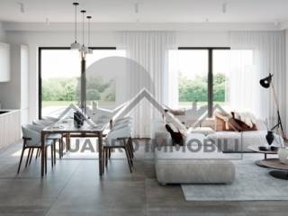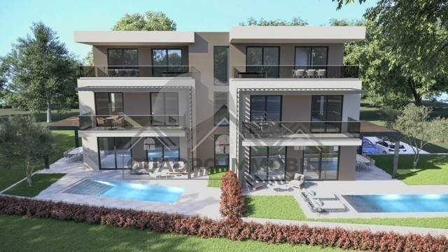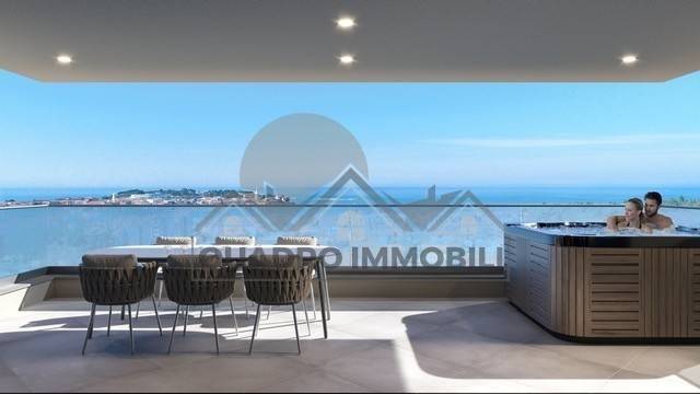 We offer an apartment in a modern building with 4 two-story apartments, two of which have access to the garden and pool, two have a roof terrace with a view of the sea. On the first floor there is a bedroom with its own bathroom, a wardrobe and a toilet with a laundry room. The second floor consists of an open living room with a kitchen and dining room of 37m2 and an exit to a covered terrace of 20.42m2, two bedrooms and one bathroom. This apartment also has a roof terrace that can accommodate a jacuzzi. Each apartment has a storage room in the basement and one outdoor parking space.