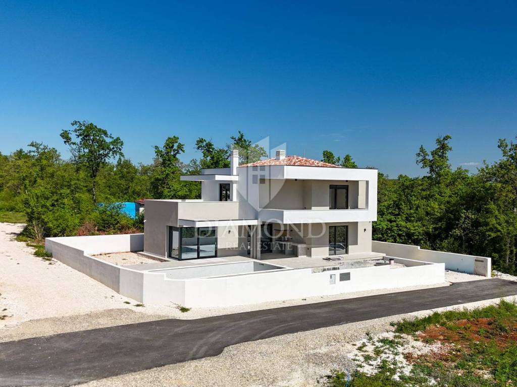 Eastern Istria, Marčana, we are selling a beautiful newly built modern villa with a swimming pool and sea view.