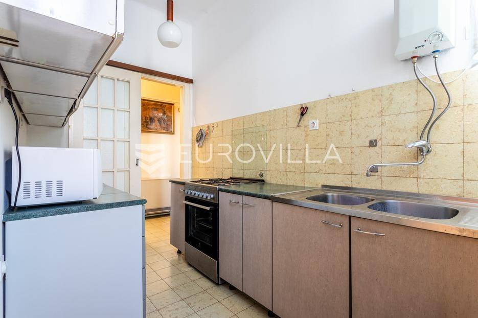 Split, Lovret, odličan dvosoban stan površine 99 m2. Položen na visokom prizemlju lijepo održavane zgrade.Jedna od najtraženijih lokacija u Splitu - Lovret, svega nekoliko minuta hoda od samog centra grada.Osnovne karakteristike:Površina: 99 m²Visoki plafoni, svijetao i prozračan prostorRaspored: dvije spavaće sobe, dnevni boravak, kuhinja, blagovaonica, kupaonica i hodnikPogled na parkUredna i održavana zgradaOvaj stan nudi savršen spoj mirnog okruženja i blizine svih sadržaja - škole, trgovine, kafići, kulturne ustanove.Zbog svoje pozicije, visine plafona i rasporeda prostorija, idealna je prilika i za uredski prostor, odvjetnički ured, ordinaciju ili druge poslovne namjene, uz zadržavanje komfora stambenog prostora.Za dodatne informacije i dogovor oko razgledavanja slobodno nas kontaktirajte.... Više na eurovilla.hr, ID: 199476