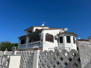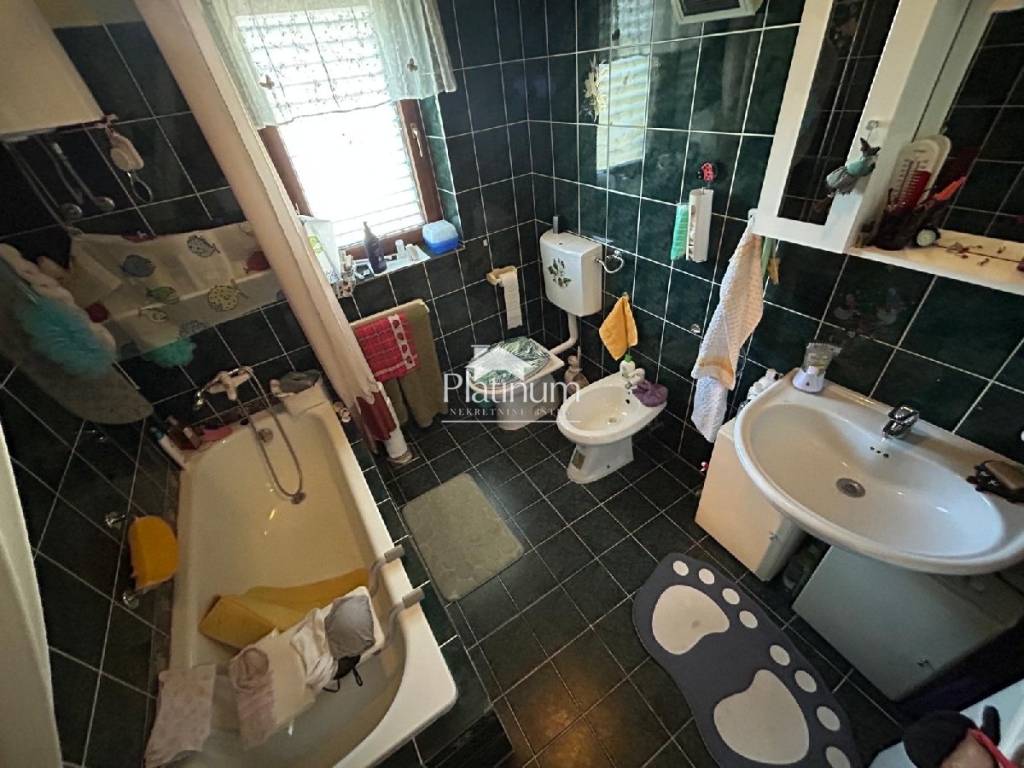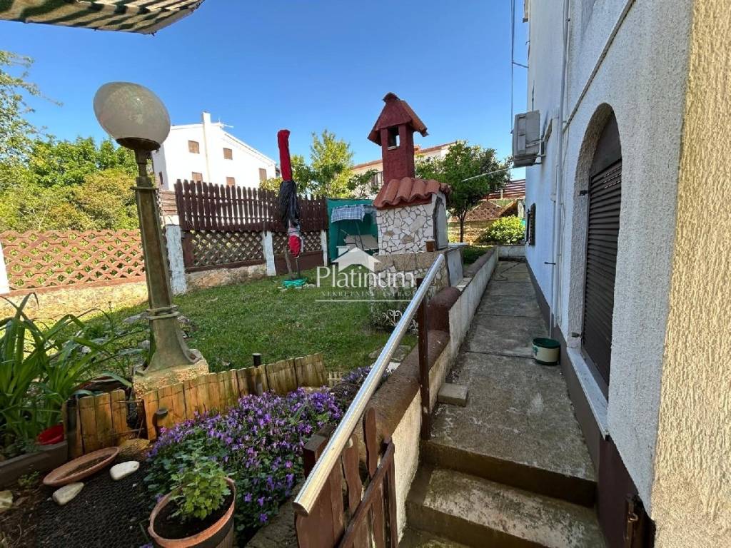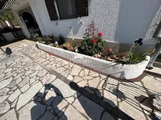 In Barbariga, in a quiet location, there is this detached house consisting of one apartment on the ground floor consisting of a bedroom, bathroom, hallway and living room with kitchen and dining area (all furnished), in the second part (which can be connected by a door into a whole) of the ground floor there is a work area, toilet, storage room, laundry room and boiler room (central heating with heating oil). Internal stairs lead to the first floor where there is the main entrance area, living room, dining room (from which there is an exit to a covered terrace), kitchen, bedroom (from which there is an exit to a covered terrace), room and bathroom. Internal stairs lead to the second floor where there is a bedroom with a covered terrace from which there is an unobstructed view of the sea and the bathroom. In the garden there is a garage, a covered summer kitchen, a barbecue and a covered area for sitting and socializing. The garden is landscaped and maintained. On the paved part of the yard it is possible to park two cars. The joinery is wooden (needs replacement), central heating, heatin