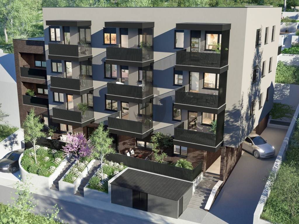 Zgrada ima asfaltirani kolni prilaz garaži i uređen pješački pristup, a dio stanova ima izlaz na vlastite ograđene vrtove s mogućnošću dodatne kupnje.