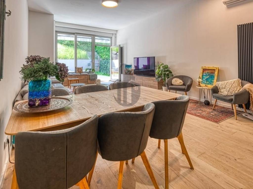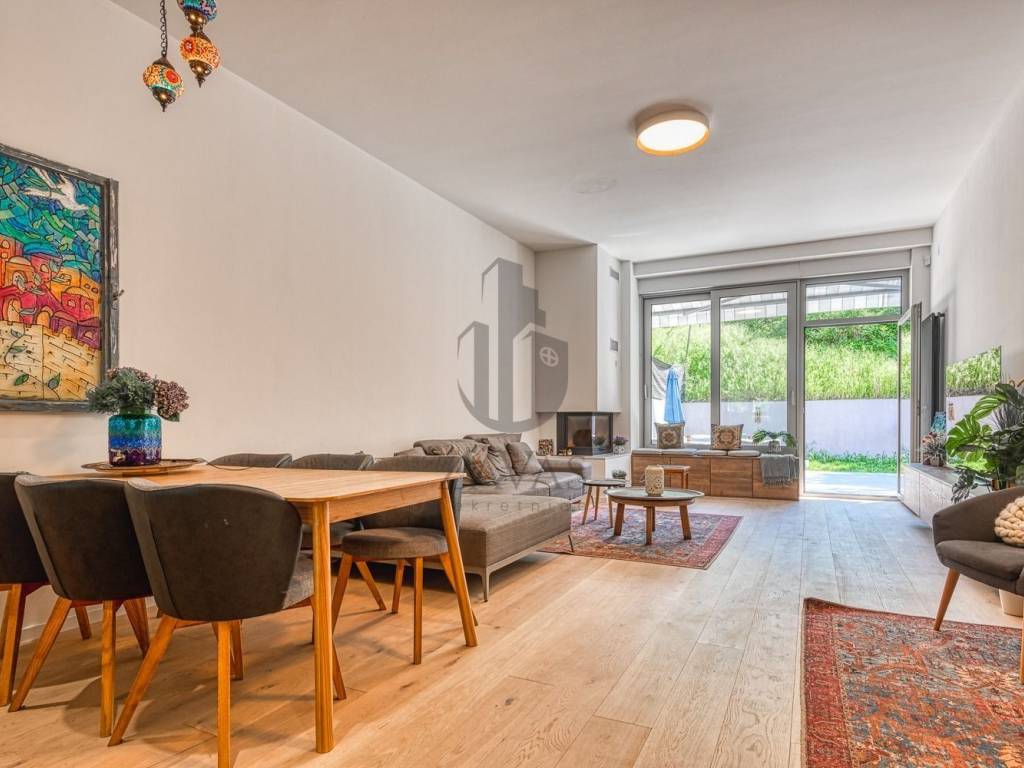 Također, pripadajući djelovi stana su vrt (47m2) i dvije terase (19,8m2 i 11,42m2).