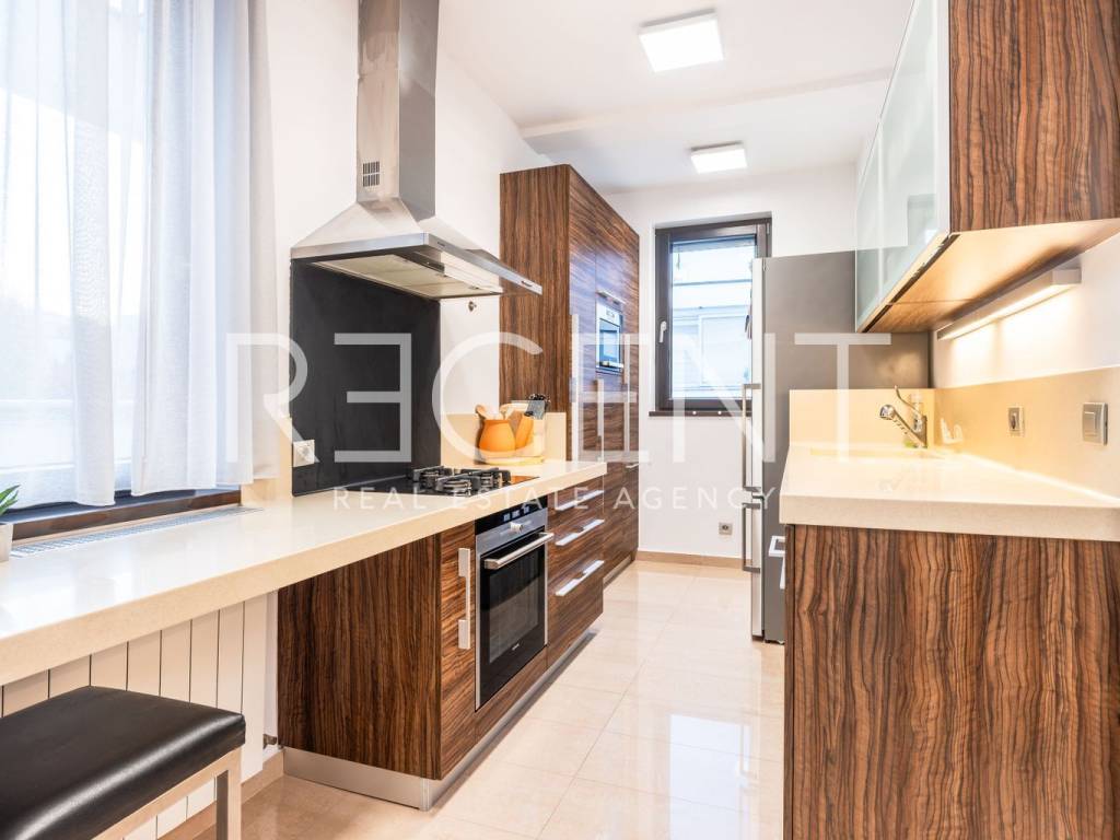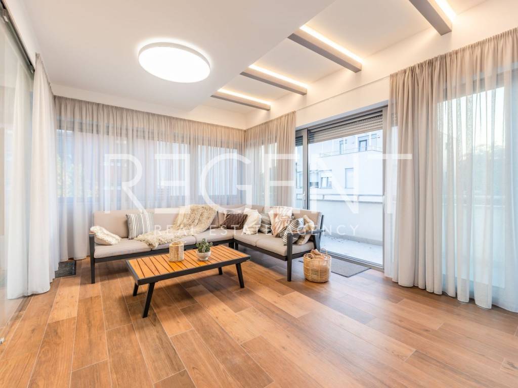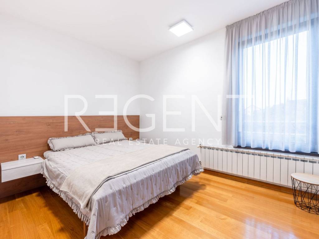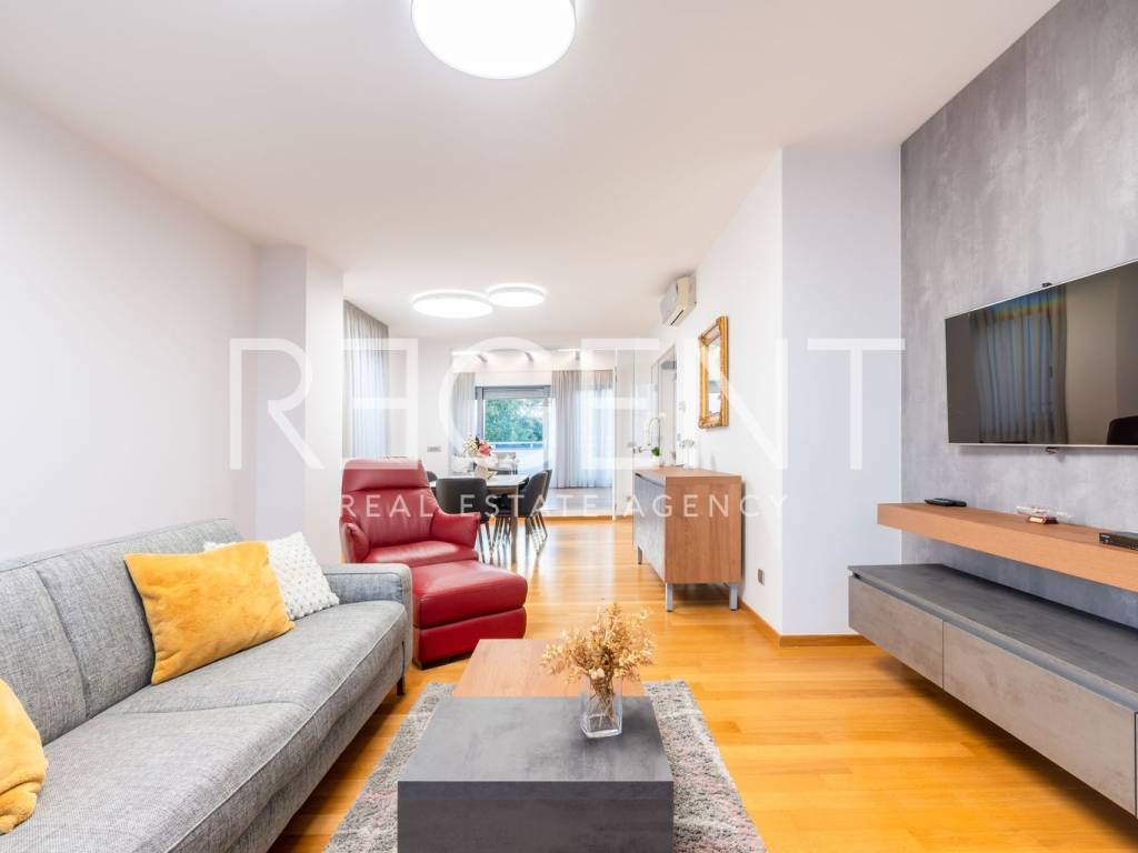 In a quiet part of Srebrnjak, a fully furnished three-room apartment with a closed area of 113.02 m² is available, located on the second floor of a new building. The apartment consists of an entrance hall with built-in wardrobes, a spacious living room with dining area and kitchen, two bedrooms, one bathroom with toilet, a guest toilet and a covered terrace of 27.47 m² (6.86 m²). It is equipped with central gas heating, air conditioning, electric shutters, intercom and security doors. It has an energy certificate C. The apartment has two garage parking spaces and one outdoor parking space. The apartment is located in a quiet street, close to public transport and all necessary amenities such as shops, schools and kindergartens. For more information or to arrange a viewing, feel free to contact us!