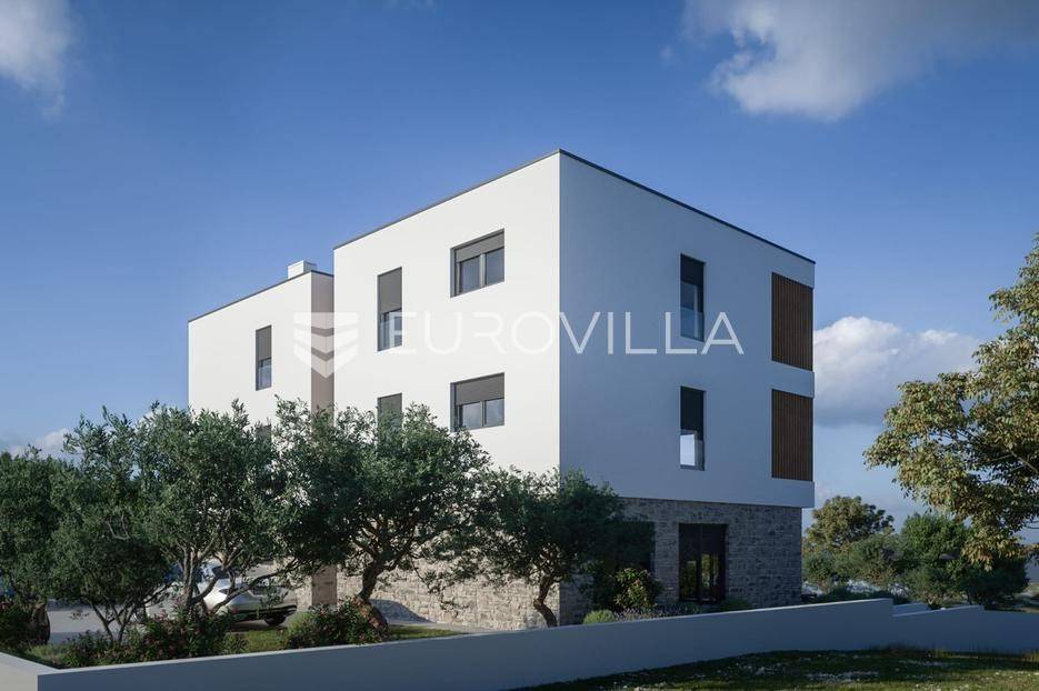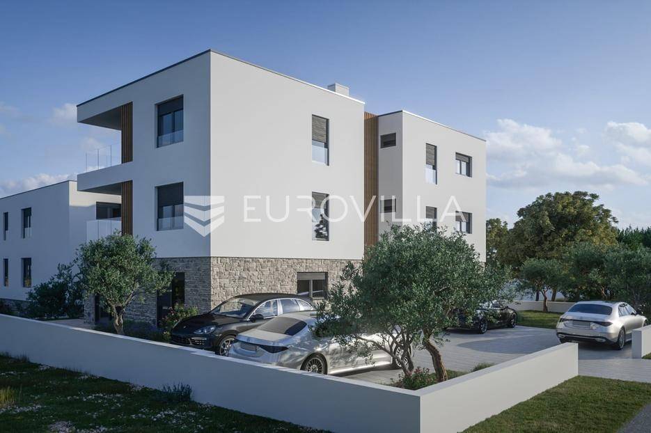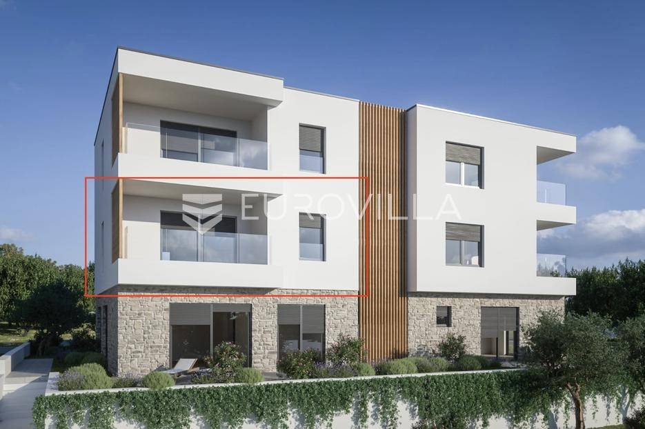 Smješten na prvom katu, u drugom redu do mora, u modernoj i kvalitetnoj novogradnji u Brodarici, ovaj funkcionalan stan nudi savršen spoj udobnosti, kvalitete i atraktivne lokacije.Stan se sastoji od ulaznog hodnika, gostinjskog WC-a, prostranog dnevnog boravka s kuhinjom i blagovaonicom, dvije spavaće sobe te jedne kupaonice. Iz dnevnog boravka i kuhinje omogućen je izlaz na natkrivenu terasu , što prostoru daje dodatnu vrijednost i osjećaj privatnosti.Orijentacija stana je južna, što osigurava obilje prirodnog svjetla tijekom cijelog dana.Nekretninu odlikuje visoka kvaliteta gradnje i opreme: aluminijska stolarija, električne rolete sa skrivenim kutijama, komarnici, protuprovalna vrata, video portafon i video nadzor. U cijelom stanu ugrađeno je podno grijanje, dok su za hlađenje predviđeni ugradbeni klima uređaji. Podne obloge čine kombinacija parketa i keramike, dok će kupaonica biti opremljena kvalitetnijom sanitarnom opremom.Planirani završetak gradnje je u prosincu 2027. godine.Nekretnina predstavlja idealnu priliku za miran obiteljski život uz more, ali i kao investicija za turistički najam.Za više informacija slobodno nas kontaktirajte.... Više na eurovilla.hr, ID: 861660