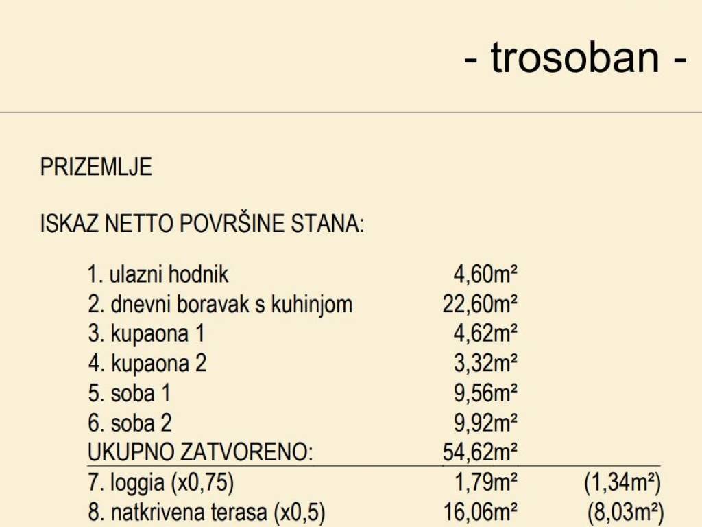 natkrivena terasa – 16,06 m² (obračunski 8,03 m²)