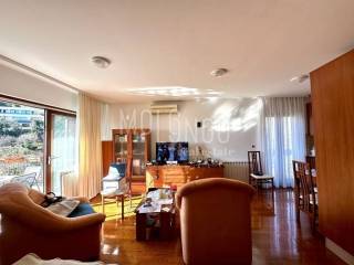 The apartment is equipped with central gas heating and air conditioning for the summer months, and high-quality parquet flooring is installed throughout.