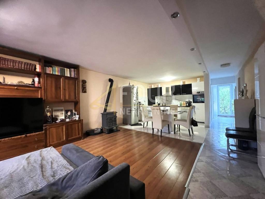 It is equipped with air conditioning, a wood stove and radiators, and the carpentry is PVC.