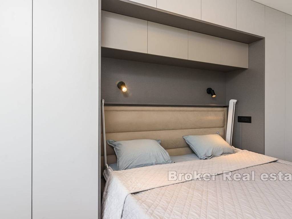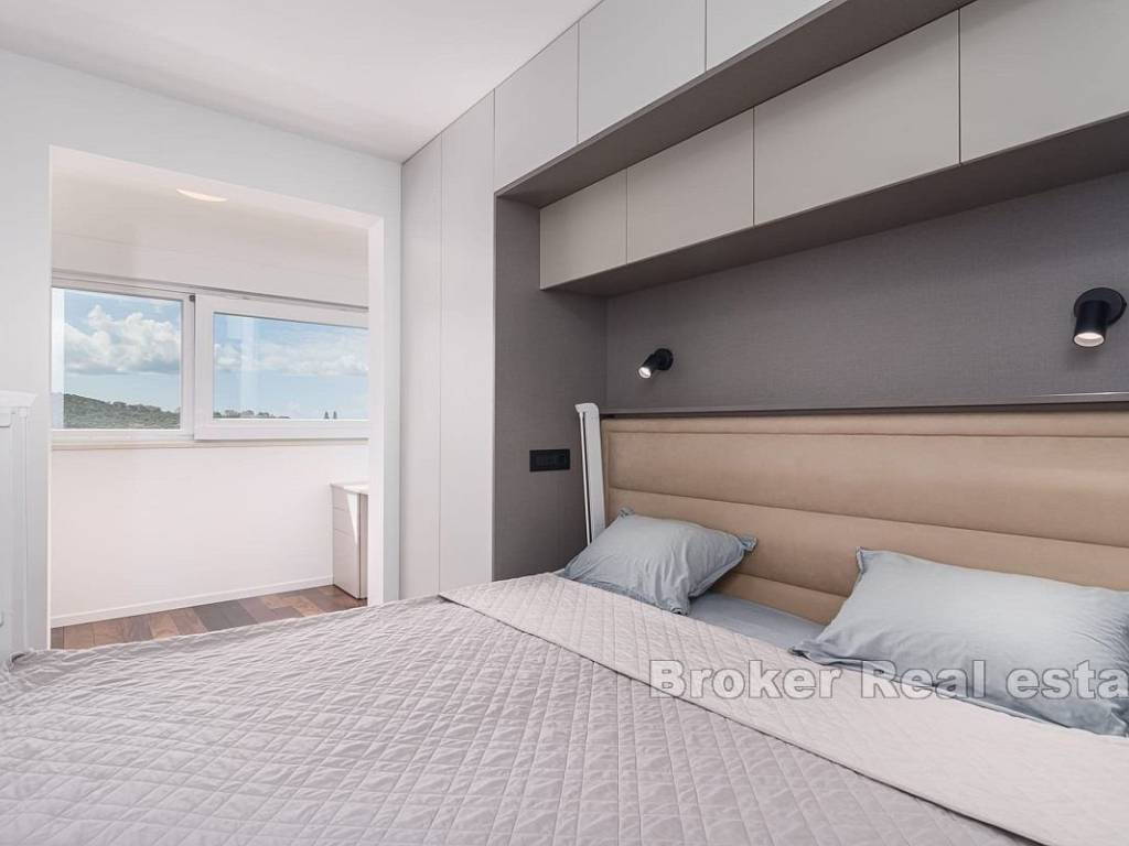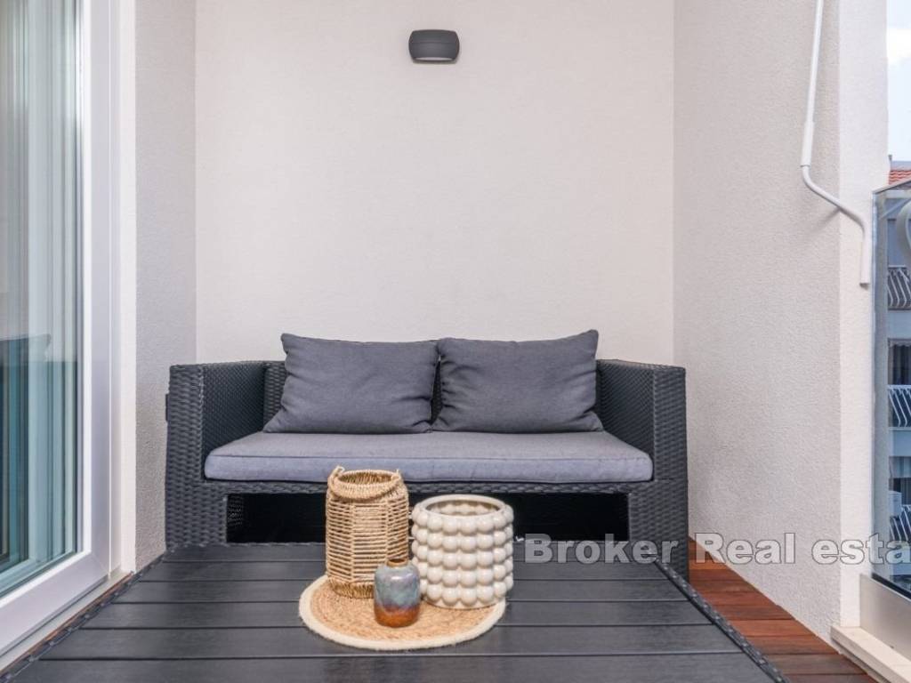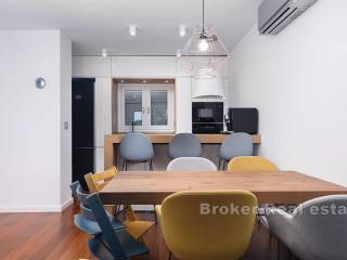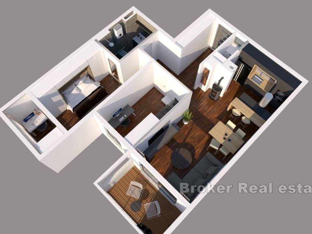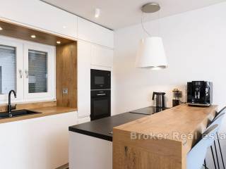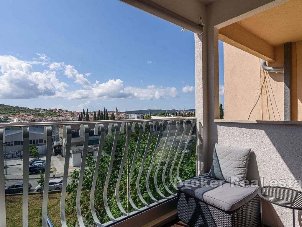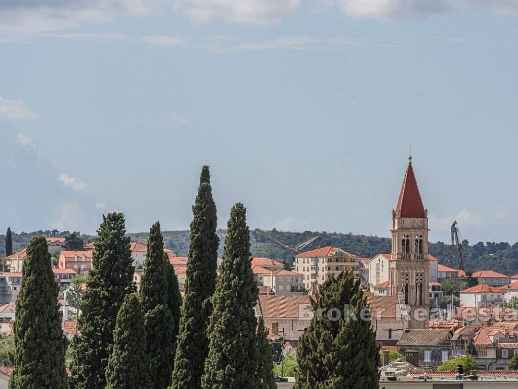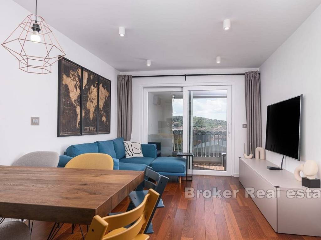 This modern two-bedroom apartment is located in an excellent location near the center of Trogir, in a smaller residential building. It is situated on the third floor of the building and has a total living area of 73 m². The apartment is an ideal choice for those looking for a comfortable living space close to all key amenities and the historic core of the city. The apartment consists of a functional entrance area that leads to spacious and bright rooms. It has two comfortable bedrooms that provide ample space for a family or guests. The bedrooms are modernly decorated, with plenty of natural light, contributing to an overall relaxing and restful ambiance. The modern bathroom is equipped with high-quality sanitary ware and details, providing everything needed for daily use. The kitchen is fully equipped and connected to the dining area. The spacious living room, which is the centerpiece of the apartment, has access to a balcony that offers a beautiful view of the city center and the sea, making it an ideal place for relaxation. The apartment is sold fully furnished and equipped, making it perfect for immediate move-in or as an investment for further rental. All furniture, appliances, and decorative elements have been carefully selected to create a harmonious and modern interior that meets high standards of comfort and style. Parking is available around the building, which is a significant advantage in densely populated urban areas like Trogir. The location of the apartment near the city center makes it an ideal choice for those looking to solve their housing needs, as well as for investors looking for a property with potential for short-term or long-term rentals. Proximity to the city center allows easy access to all important amenities, including shops, restaurants, schools, kindergartens, pharmacies, and the famous historical landmarks of Trogir, which is a UNESCO World Heritage site. This makes the apartment a perfect choice for those who want to enjoy all the benefits of urban living with the comfort and peace of their own home.