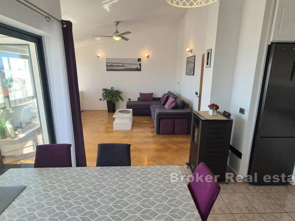 This spacious two-level apartment comprises a living room, kitchen, dining area, three bedrooms, two bathrooms, two storage rooms, and an additional separate storage room in the building. It also includes a loggia, balcony, and entry hall, with a total net area of 85.17 m². The building where the apartment is located offers shared parking. The apartment is sold with most of the furniture. It is situated in an excellent location, just 540 meters from the beach. Nearby are all necessary amenities, including a restaurant, shop, kindergarten, and school, making it ideal for comfortable and practical living as well as for tourist rental.