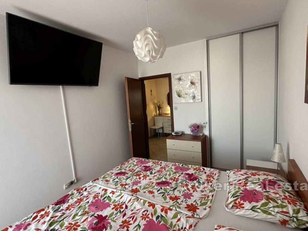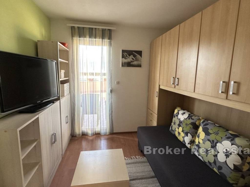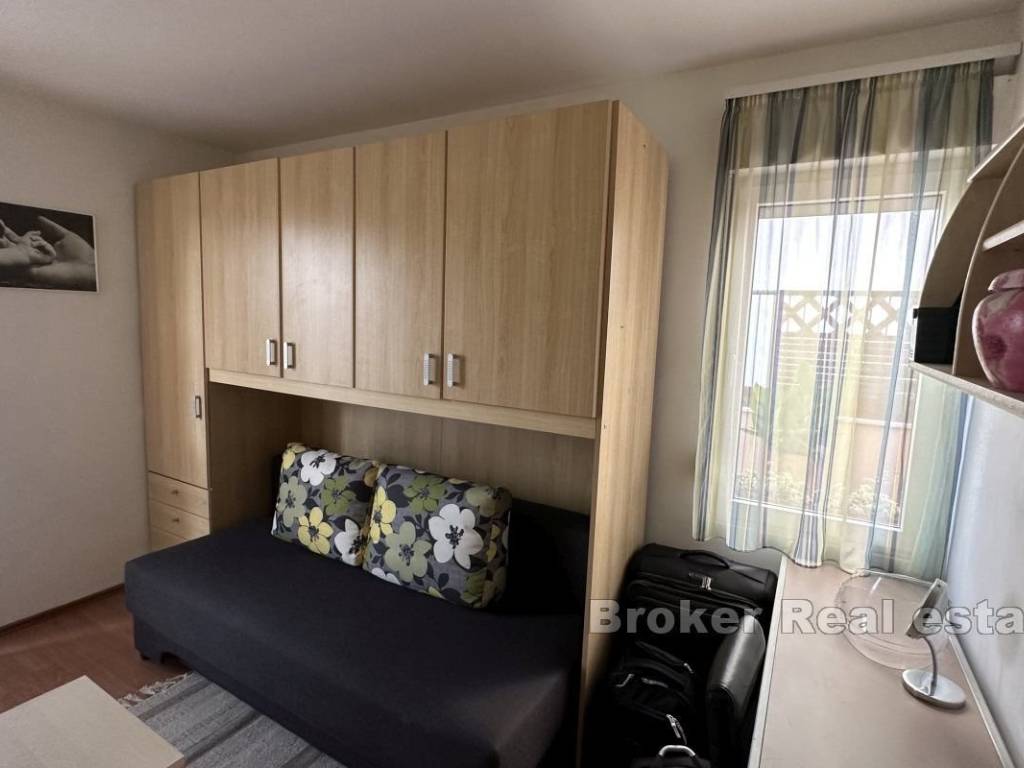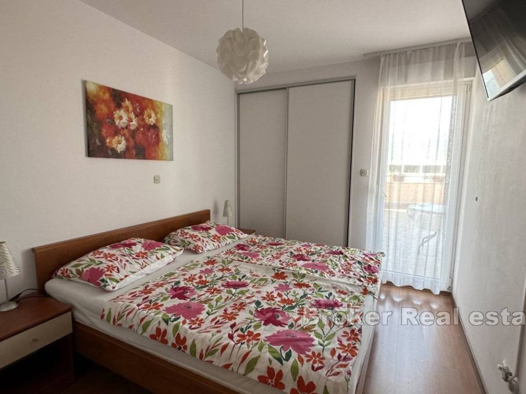 Two-bedroom apartment with a large terrace of approx. 100 m2 and a view. This two-bedroom apartment with a comfortable terrace is situated in a peaceful neighborhood, close to all essential amenities. Located on the second floor of a mixed-use building, it features 58 m² of living space and a 100 m² terrace with a city view. The apartment faces east. The layout is practical and includes a hallway, a bathroom, a kitchen connected to the living room, and a dining area with access to the terrace. The bedrooms also have direct access to the terrace. Public parking spaces are available next to the building, and residents have access to a private courtyard. The apartment offers a quiet and pleasant environment, while the terrace provides various usage options. The property is situated in a tranquil neighborhood, ensuring an uninterrupted stay and privacy despite the surrounding busy traffic. It offers diverse possibilities, including rental or long-term family living. Shops, cafes, restaurants, and other essential services are nearby, and Žnjan Beach and the city center are just a few minutes’ drive away.