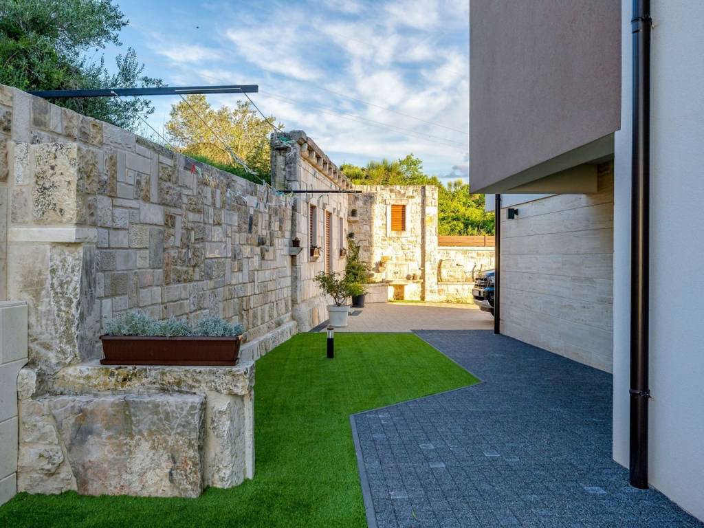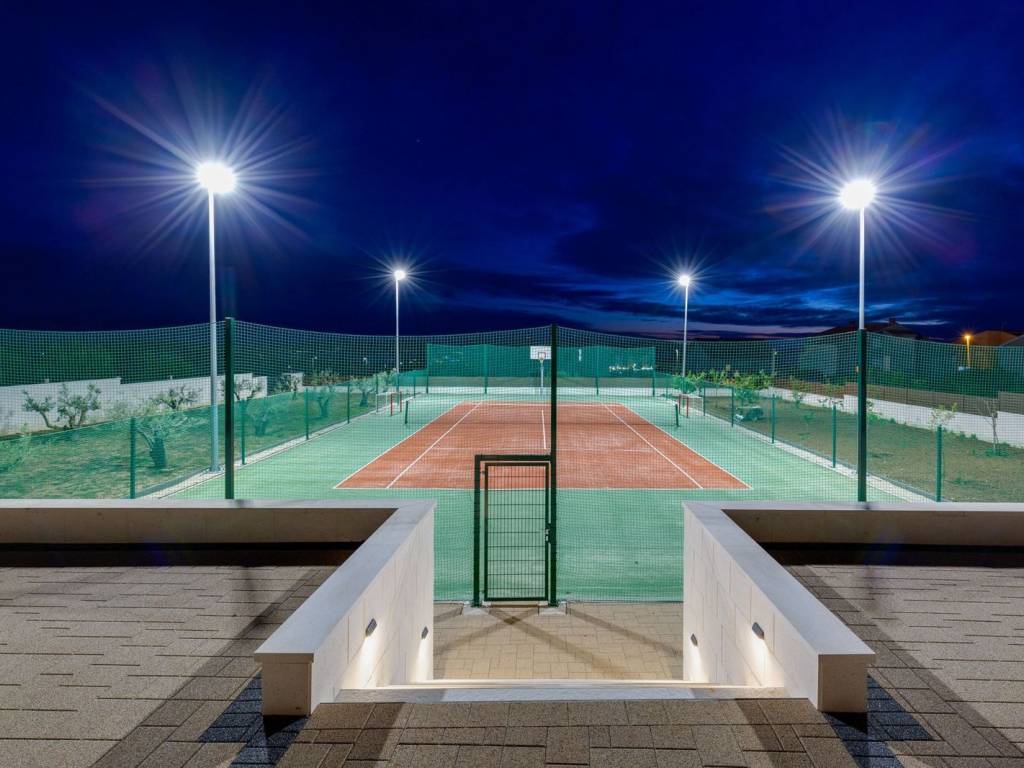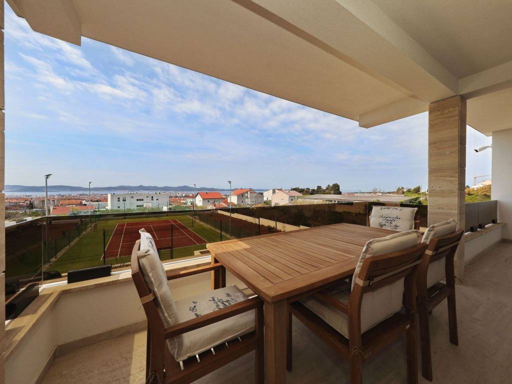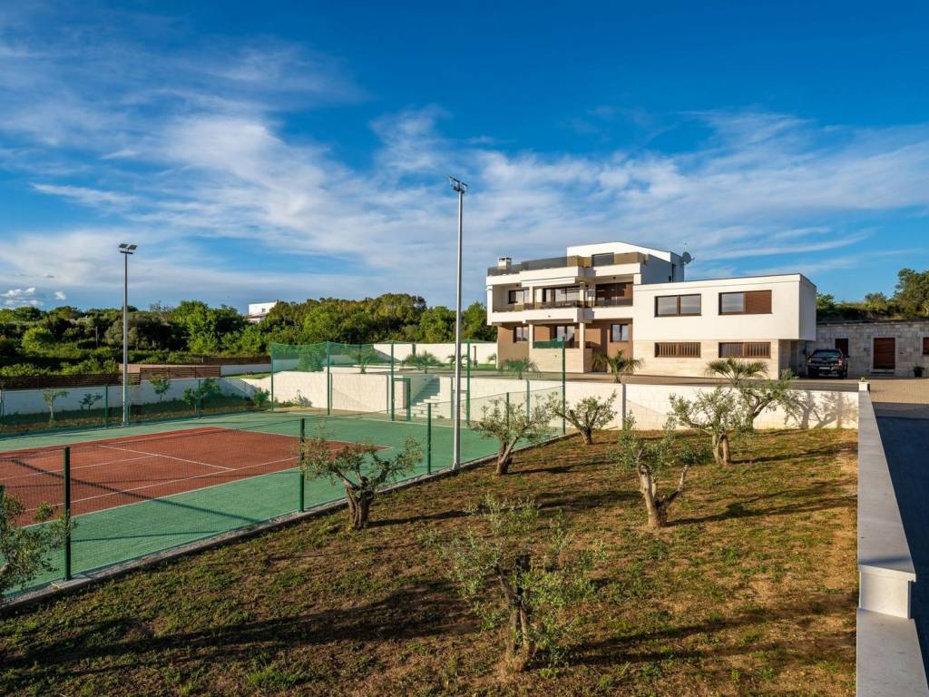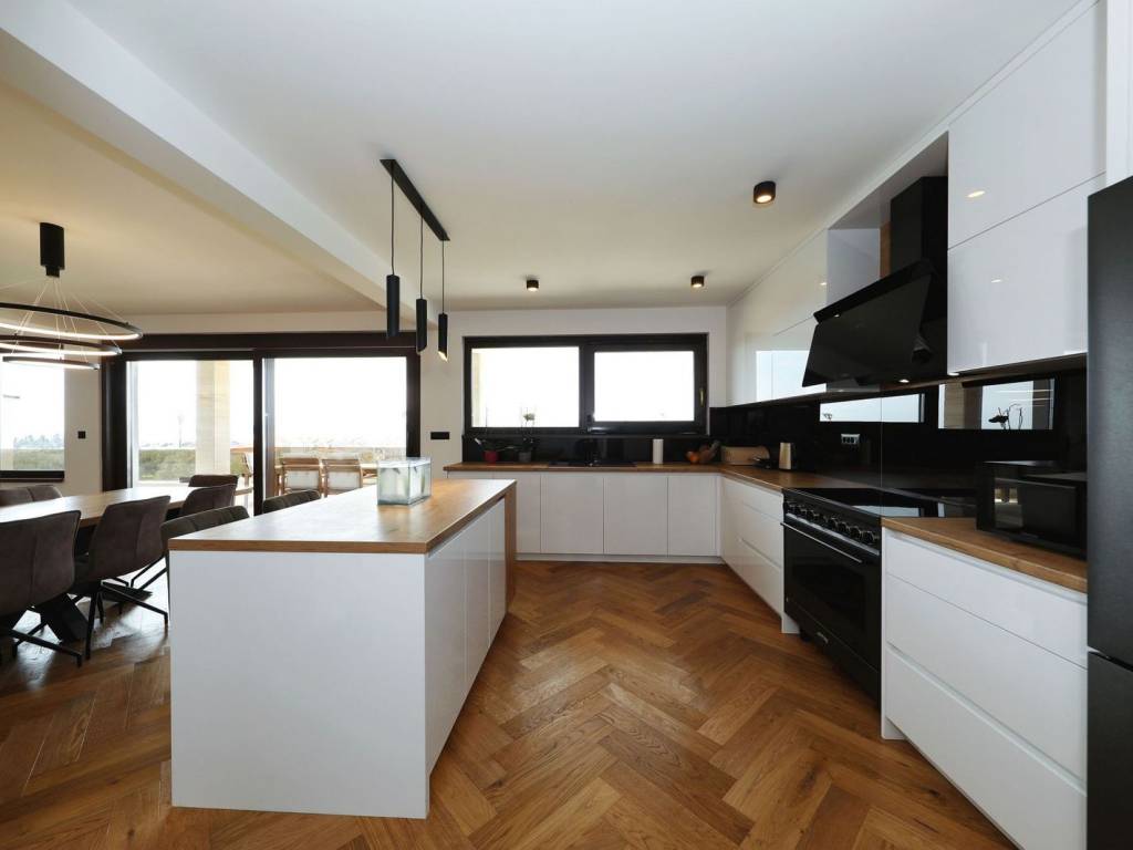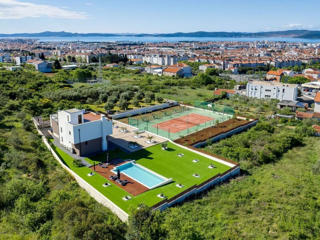 A luxury villa with a panoramic view of the sea is for sale. The total living area of 380 m2 is located on a plot of approx. 5100 m2. The spacious plot truly provides a sense of privacy and intimacy, allowing residents to enjoy their own piece of paradise without any of the distractions and noise of the busy world. The full potential of the basement space has been used, a large tavern with an internal stone grill combines traditional and modern design, creating a perfect atmosphere for relaxation and socializing. The ground floor consists of an entrance hall, a bathroom and three spacious, modernly furnished bedrooms. An internal staircase leads to the first floor, which consists of an open space with a living room, dining room and kitchen, two bedrooms, two bathrooms and a storage room. The villa has an exit to the roof terrace, from which there is an enchanting view of the panoramic view of the sea and the islands, as well as every edge of the city of Zadar. During the construction, only the highest quality materials were used, the furniture and equipment were followed by the same standards, ensuring undisturbed enjoyment of the stay. Floor heating is located in each room, while air conditioners are located in each room. Outdoor parking is provided for a large number of cars, there is room for two cars in the garage. This villa is not only a home, but also an oasis of peace, luxury and absolute enjoyment.