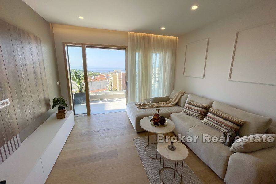 New construction in Makarska with a sea view. This elegant residential building offers modern comfort and high quality standards. The building consists of a basement with two floors (-1 and -2, with garage spaces), a high ground floor and 4 floors. With a total of 40 residential units with two entrances and elevators. Construction began at the beginning of 2022, occupancy is planned by the end of 2023. This project is synonymous with luxury housing. High-quality materials and carefully selected details make these apartments an attractive choice for those who appreciate style and security. Advantages of this new building: – Quality facade with thermal insulation and silicate paint. – High standards of insulation (thermo, hydro, and sound insulation) – Rainwater drainage on the balconies discreetly built into the facade. – The internal stairs and the walls around the elevator are lined with stone. – Glass railings on the balconies for an unobstructed view of the sea. – High-quality external carpentry with thermal insulating glass. – Security anti-burglary entrance door. – Floor heating in the bathrooms with quality ceramic tiles. – High-quality parquet in living rooms, dining rooms and bedrooms. – Mitsubishi air conditioners in each bedroom and living room. – LED lighting. – Video intercoms for additional security. – Two elevators for easy access to each floor. – Garage door with remote control. – Individual water meters and electric meters for each apartment. – Arranged horticulture around the building with various plants and trees. Variety of residential units: one-room apartments from 50 m2 to 53 m2 facing south and two-room apartments from 60 m2 to 72 m2 oriented South-East-West. This building offers not only a home, but also an investment in your future. It is a great option for those who are looking for a quality living space or who are looking for a top investment. We offer unfurnished or furnished apartments for an additional fee. Available apartments: ENTRANCE A GROUND FLOOR: – A1 – 52.70 m2 (one bedroom apartment with loggia/terrace) – €263,500.00 – A2 – 52.10 m2 (one bedroom apartment with covered terrace) – €260,500.00 – A3a – 71.07 m2 (two-room apartment with loggia) – €351,797.00 I. FLOOR – A4 – 67.69 m2 (two-room apartment with loggia) – €341,835.00 – A5 – 50.17 m2 (one bedroom apartment with balcony) – €253,359.00 – RESERVED – A7 – 63.64 m2 (two-room apartment with loggia/balcony) – €315,018.00 II FLOOR – A11 – 63.64 m2 (two-room apartment with loggia/balcony) – €315,018.00 III.FLOOR – A12 – 71.11 m2 (two-room apartment with loggia) – €366,217.00 – RESERVED – A13 – 50.17 m2 (one bedroom apartment with balcony) – €258,375.50 – RESERVED – A15 – 63.64 m2 (two-room apartment with loggia/balcony) – €315,018.00 FLOOR IV – A19 – 63.64 m2 (two-room apartment with loggia/balcony) – €315,018.00 ENTRANCE B GROUND FLOOR – B1- 52.70 m2 (one bedroom apartment with loggia/terrace) – €263,500.00 – B2 – 52.11 m2 (one bedroom apartment with covered terrace) – €260,550.00 – RESERVED – B3 – 60.04 m2 (two-room apartment with loggia) – €300,200.00 – B4 – 63.92 m2 (two-room apartment with loggia) – €316,404.00 I. FLOOR – B5 – 71.11 m2 (two-room apartment with loggia) – €359,105.00 – B6 – 50.17 m2 (one bedroom apartment with balcony) – €253,358.00 – B8 – 63.64 m2 (two-room apartment with loggia/balcony) – €315,018.00 – II FLOOR – B9 – 71.11 m2 (two-room apartment with loggia) – €362,661.00 – B10 – 50.17 m2 (one bedroom apartment with balcony) – €255,867.00 – B12 – 63.64 m2 (two-room apartment with loggia/balcony) – €315,018.00 III.FLOOR – B13 – 71.11 m2 (two-room apartment with loggia) – €366,217.00 – B14 – 50.17 m2 (one bedroom apartment with balcony) – €258,375.00 – B16 – 63.64 m2 (two-room apartment with loggia/balcony) – €315,018.00 FLOOR IV – B17 – 64.92 m2 (one bedroom apartment with loggia) – €337,584.00 – B20 – 63.64 m2 (two-room apartment with loggia/balcony) – €315,018.00
