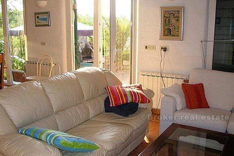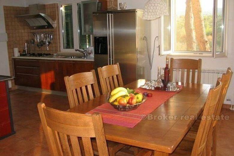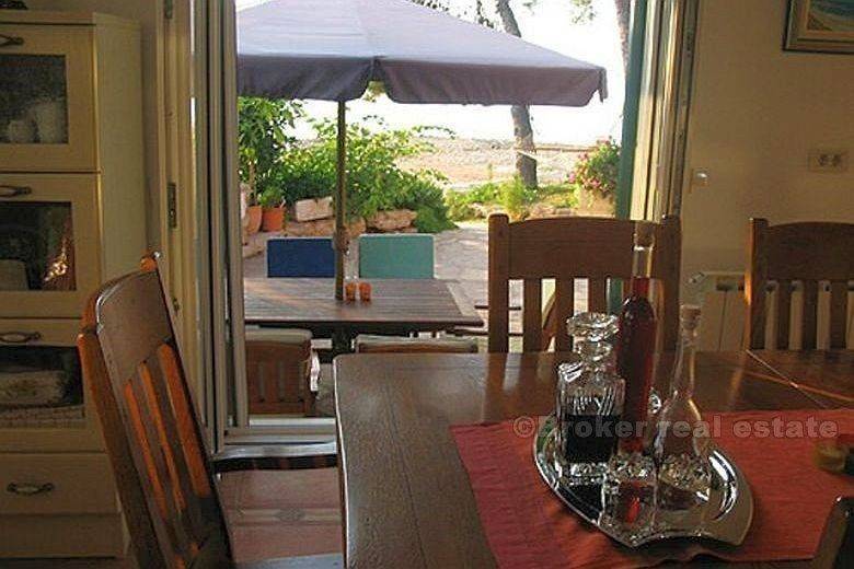 Beautiful villa right by the beach, on a peaceful location, surrounded with pine forest. It consists of two stroreys; on the ground flor, there is a spacious open-plan space with a dining room, a completely equipped kitchen and a living room, a bathroom and a terrace, which is sheltered from three sides and suitableforhaving meals outside. On the upper floor, there are two double bedrooms with en-suite bathrooms. Each room has the air conditioning system. The house offers a wonderful wiev of the sea and the beach.