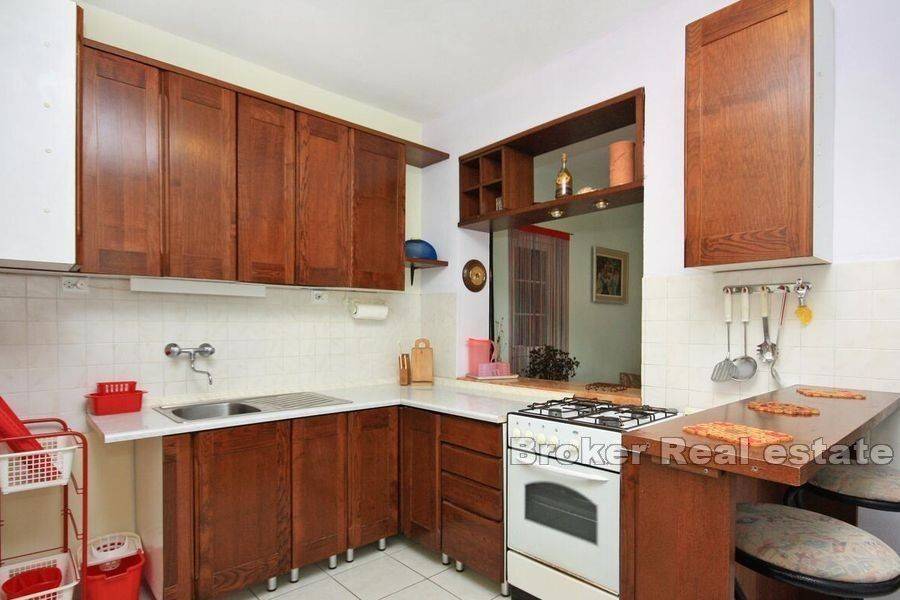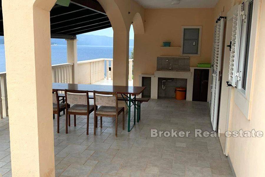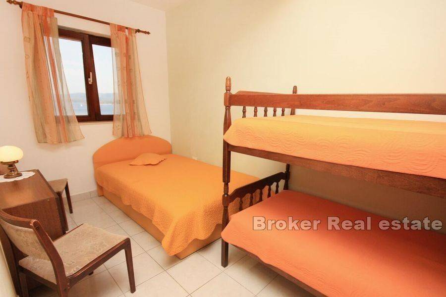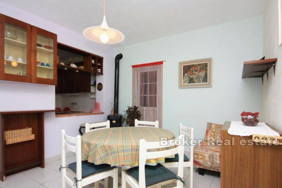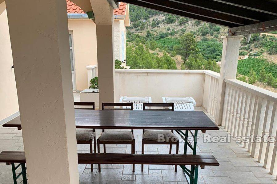 House with a spacious garden near the sea on Brač. The property with a net living area of 178 m2 is located on a plot of land of 1060 m2 and covers the basement, ground floor and first floor. On the ground floor there are two bedrooms, a kitchen, a living room, one bathroom and a spacious covered terrace. From the terrace there is a stunning open view of the sea. The first floor consists of two bedrooms, a kitchen and a living room, one bathroom, a storage room and a balcony. There is a kitchen in the property. In the garden there are 12 olive trees and vines and two small houses, one of which serves as a kitchen, and the other as a chimney and summer kitchen. It is located 170m from the sea, has several outdoor parking spaces.