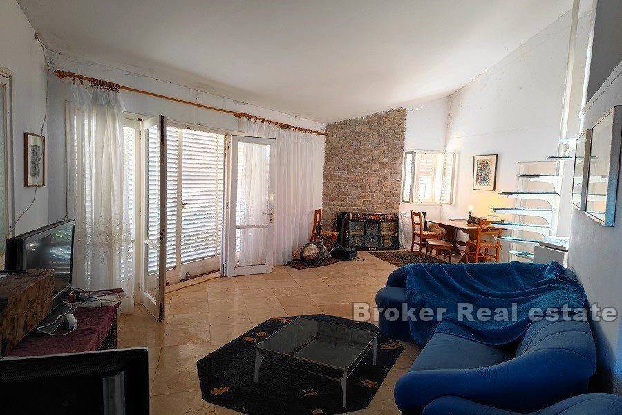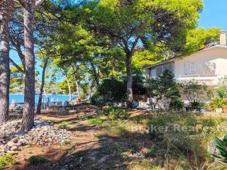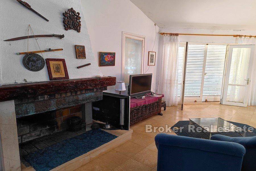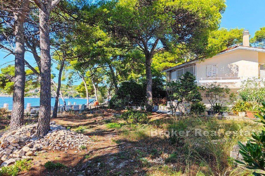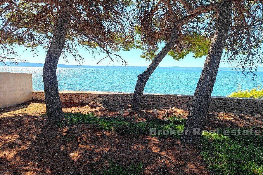 Brač house first row to the sea.  Attractive southern location on the island of Brač, 10 m from the sea and the beach. The house itself has smaller dimensions and is spread over two floors:  – on the ground floor there is a kitchen, dining room, bedroom and bathroom  – on the first floor, which has a separate entrance, there is a kitchen, a living room with access to the terrace, a bathroom and an additional gallery space The house needs to be refreshed, and the large plot of 1200 m2 on which it is located offers the possibility of building two villas with swimming pools, or expanding the existing building according to the wishes and needs of the new owner. In front of the house there is a natural beach with crystal clear sea, the excellent orientation of the property protected from the winds, with an open view of the sea and the nearby islands gives a great atmosphere of staying there.