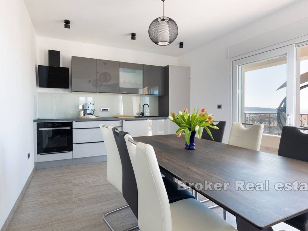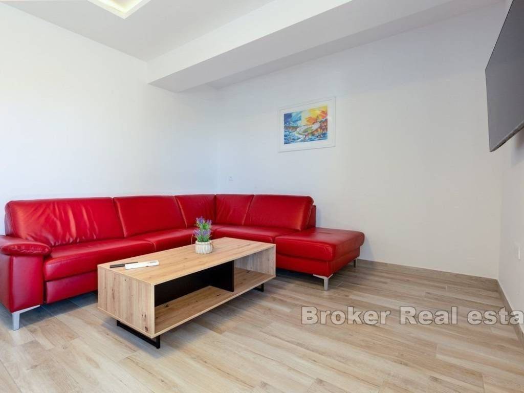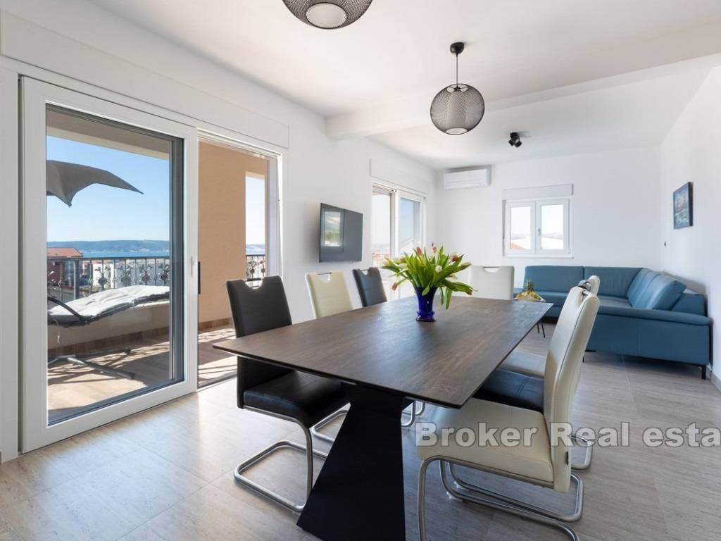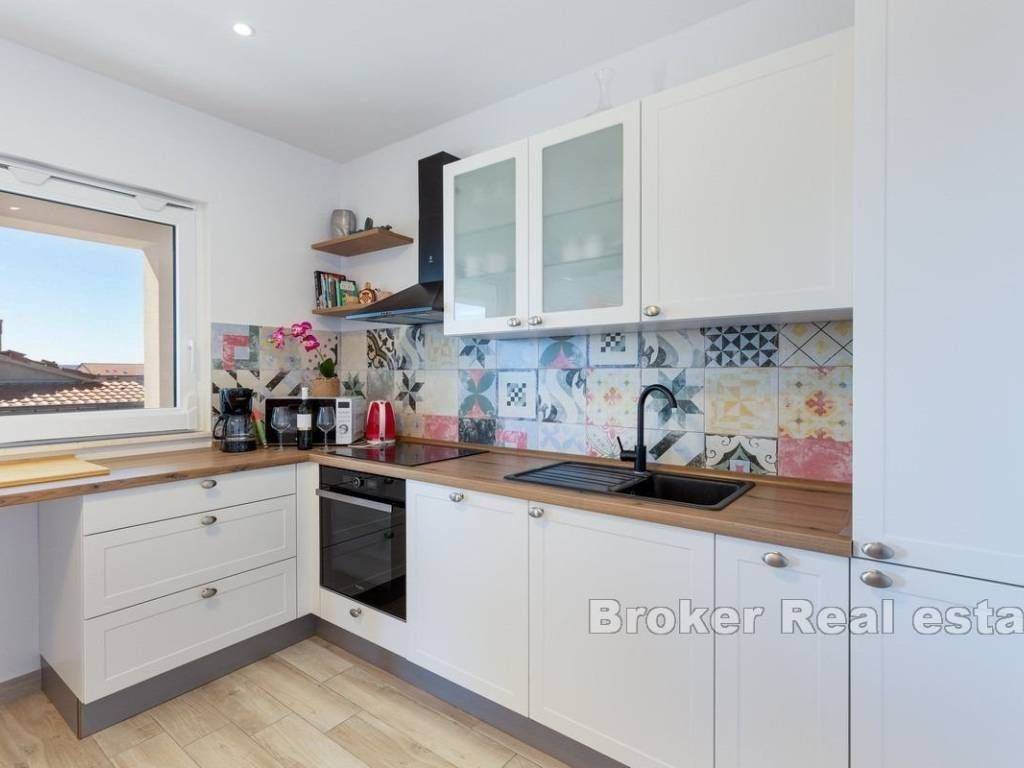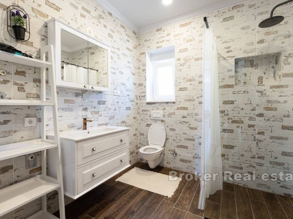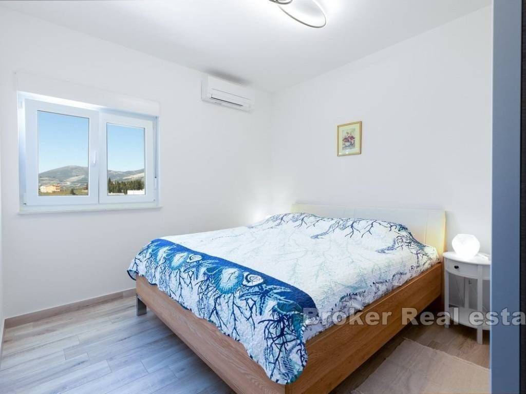 We present to you a beautiful and modernly equipped villa located in Kaštela, which offers the perfect combination of luxury, comfort and functionality. This impressive property extends over a living area of 300 m² and is located on a landscaped plot of 500 m². Ideal for tourist rental, as well as for year-round living, this villa is only 900 meters from the sea, and its numerous amenities are complemented by a peaceful and attractive environment. The basement of the house contains a technical room and a spacious storage room, making it ideal for organizing and maintaining household appliances and storing them. This space ensures optimal functionality and practicality. The ground floor of this luxury villa is designed as a zone for relaxation and socializing. It contains: A sauna for complete relaxation, a gym for active lifestyle enthusiasts, a games room, perfect for entertaining all generations, a modern kitchen, connected to the living area, which opens onto a spacious balcony and terrace. On the terrace there is a swimming pool surrounded by sun loungers, an outdoor barbecue with a summer kitchen and an outdoor dining area, creating the perfect place to enjoy long summer evenings. The first floor offers plenty of space for everyday life and includes: two spacious bedrooms, an elegantly decorated living room, a fully equipped kitchen, a bathroom and a separate toilet, a storage room for additional organization, a spacious balcony, which provides an intimate place to enjoy your morning coffee. The second floor is perfect for larger families or guests. This space includes: three comfortable bedrooms, a living room, a kitchen, a toilet, a balcony with panoramic views of the surroundings. The top floor of this villa hides a spacious roof terrace with a luxurious jacuzzi, from which a spectacular and open view of the sea is offered. This space is ideal for relaxing under the stars or enjoying unforgettable sunsets. The villa is equipped with top-notch equipment to ensure maximum comfort and safety: solar panels for water heating, air conditioning in all rooms, outdoor video surveillance, outdoor shower, barbecue with summer kitchen, all modernly furnished interior and exterior. This unique property exudes sophistication and style, combining superior functionality, spaciousness and luxury. Located in an attractive location in Kaštela, it offers everything you need for luxurious family life or as an exceptional investment for tourist rental. Don’t miss the opportunity to become the owner of this luxurious villa that perfectly combines modern design, natural beauty and practicality!