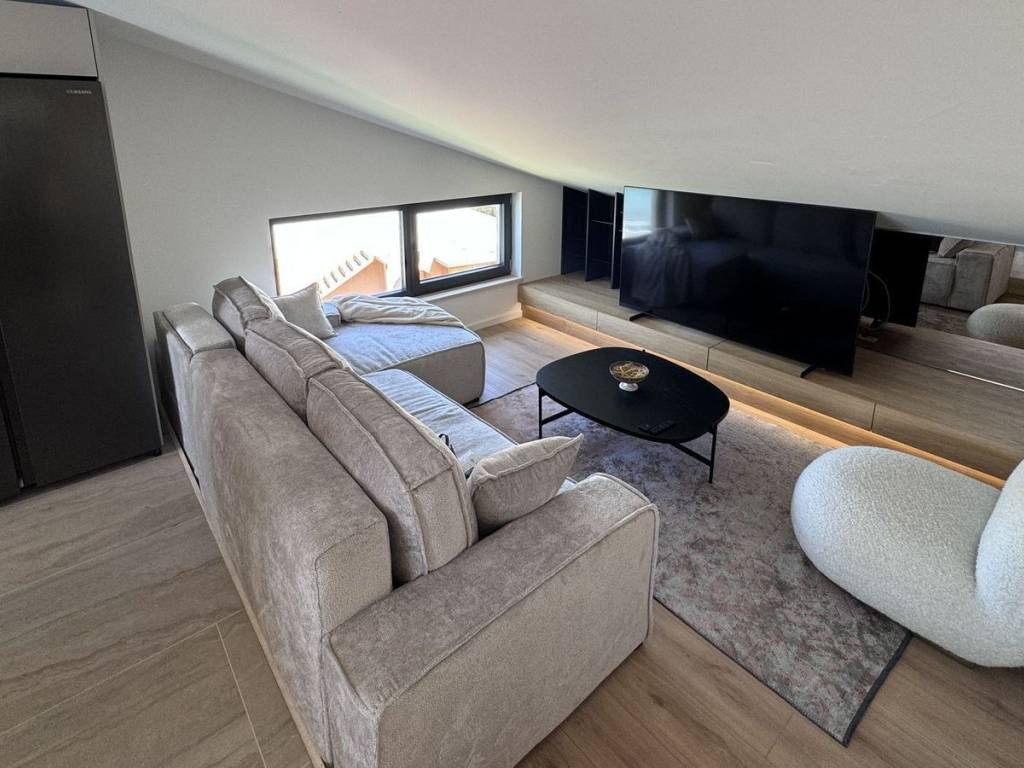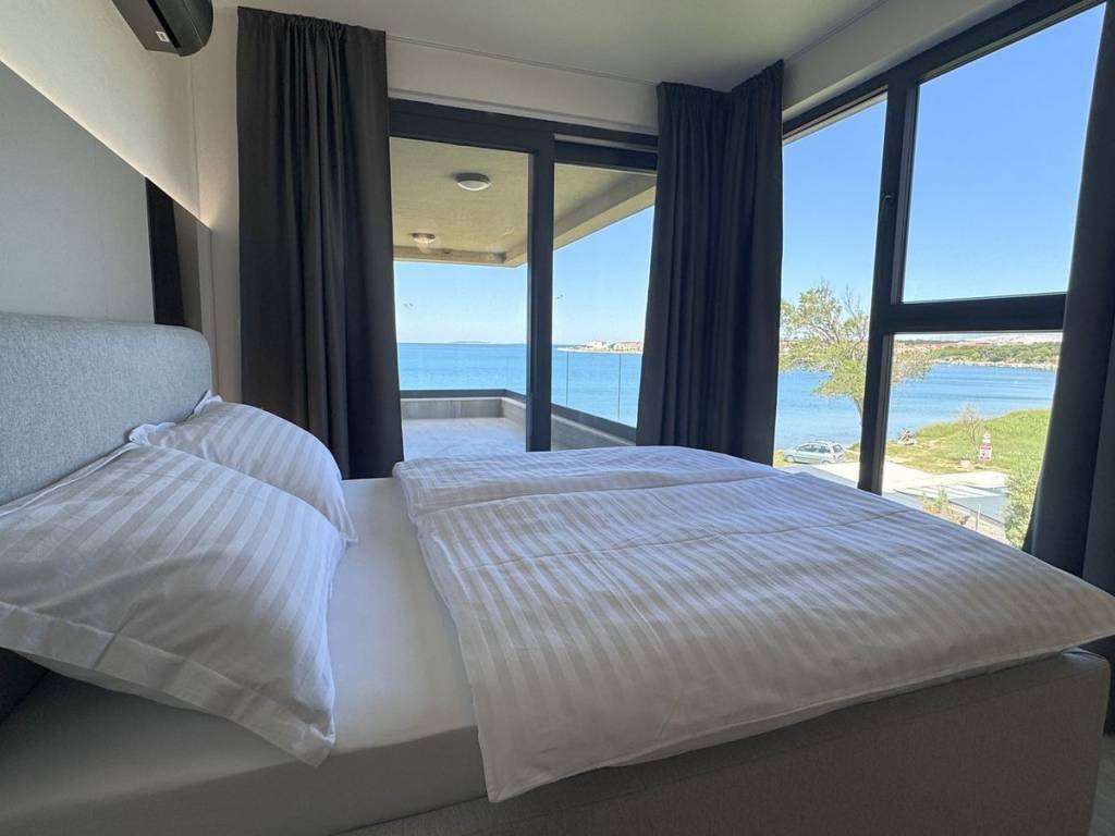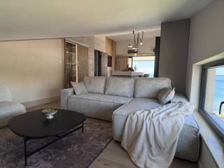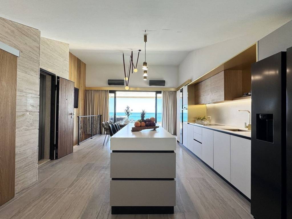 A unique three-room penthouse located in the first row to the sea on the island of Pag.   Modern decoration style, with every detail highlighted in a special way, make this penthouse unique, as well as an enchanting view of the sea.   It covers 118 m2 of living space, elegantly arranged on the last two floors of a smaller residential building, whose modern architecture is perfectly integrated into the environment.   The entrance to the apartment is made possible by an elevator but also by a staircase. The first floor consists of the entrance part of the apartment, three modern bedrooms, each of which has a balcony and a unique view of the sea and the beach, two bathrooms, and a storage room. An internal staircase leads to the second floor, which consists of an open concept kitchen and dining room with a living room, due to the open concept and large glass walls, the entire space is bathed in sunlight and offers a fabulous view of the sea. A special feature of this extraordinary penthouse is the spectacular terrace, where the jacuzzi is located, and it is also designed as a place for socializing and relaxing, with a fascinating view of the sea and islands.   Each room is equipped with air conditioning, TV and WiFi. The apartment has an outdoor parking space and a small storage room on the ground floor of the building.   Due to its numerous characteristics, it is perfect for those looking for a family oasis for vacation, as well as an exceptional opportunity for investors with great potential for tourist rental.   Its first-class location is perfect for escaping from the hustle and bustle of the city, and at the same time only a short drive away from the center of Pag. The island of Pag, known for its unusual landscape and rich cultural heritage, is one of the most desirable destinations on the Adriatic. With its long coasts, clear sea, historic towns and world-famous pastures where the famous Pag cheese is produced, Pag offers a unique combination of natural beauty and cultural experiences.