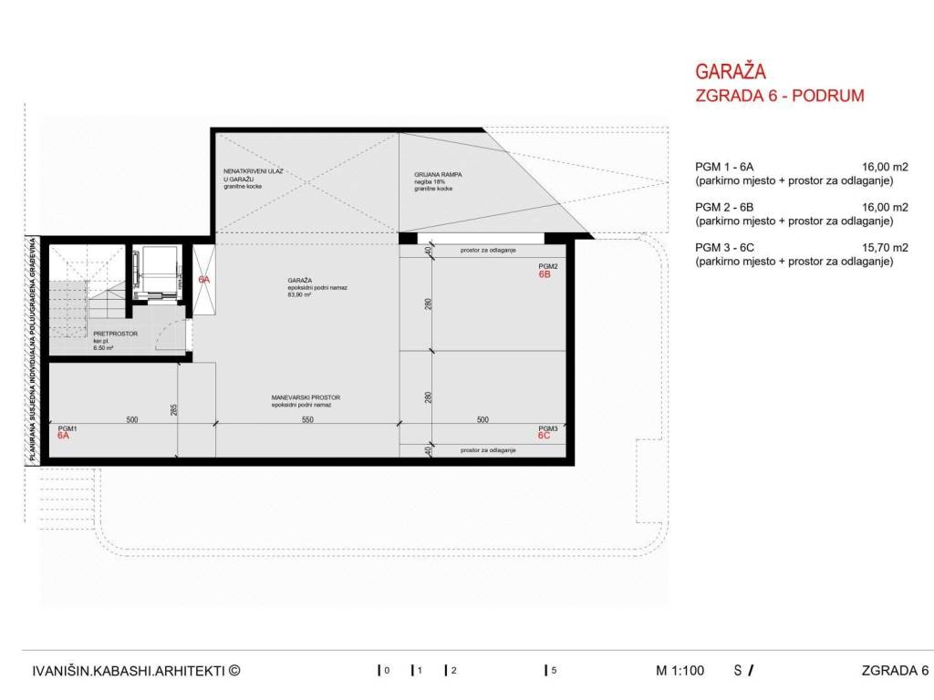 Podzemna garaža opremljena je suvremenim priključcima za punjenje električnih automobila te svako parkirno mjesto ima mogućnost punjenja i pripadajući prostor za odlaganje stvari.