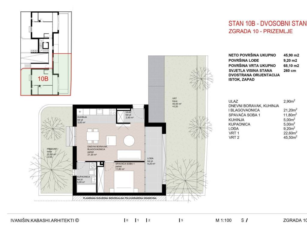 U okruženju u kojem dominiraju manji objekti, , blizine tramvaja 2min, škole, fakulteta, bolnice, vrtići i ostalih sadržaja koja su potrebna i po mjeri mlade obitelji potrebnih za moderno stanovanje.