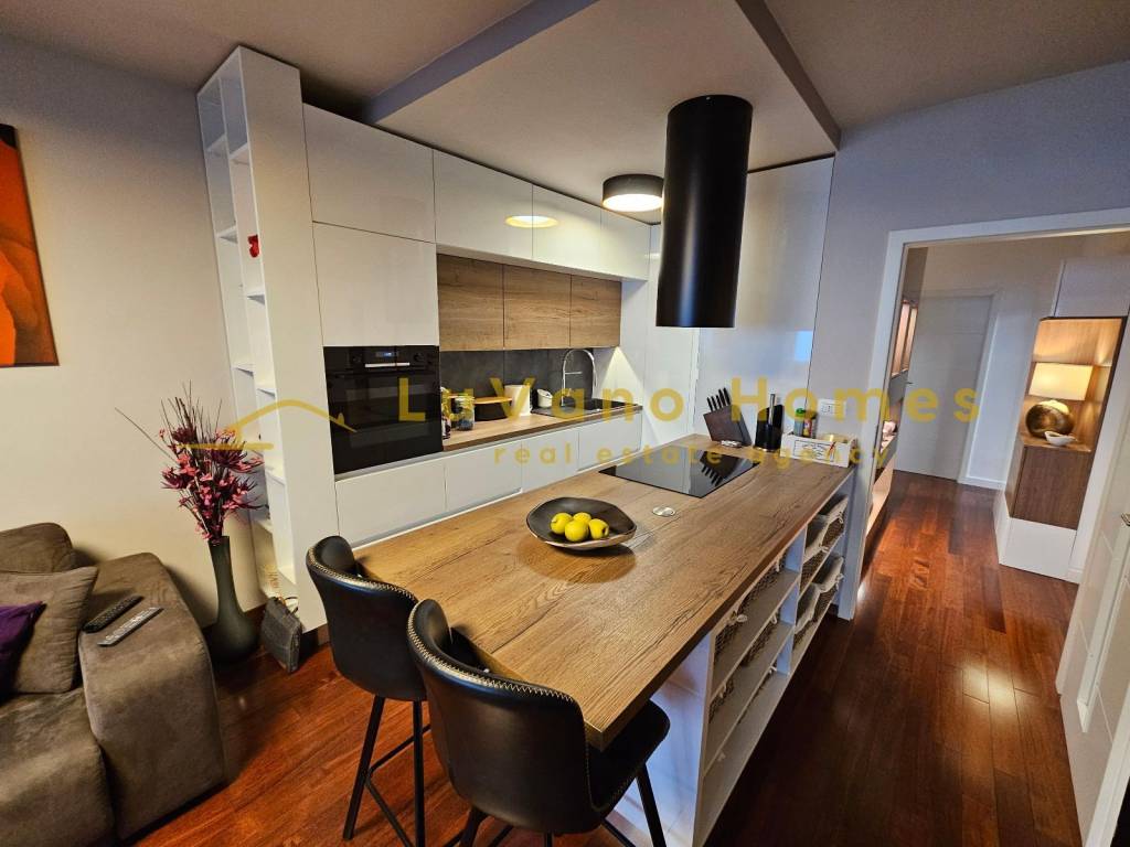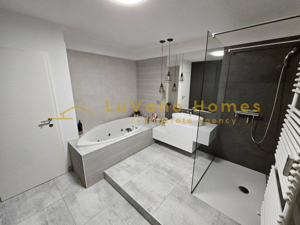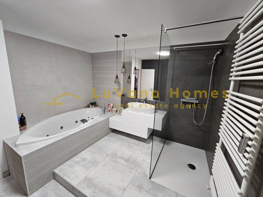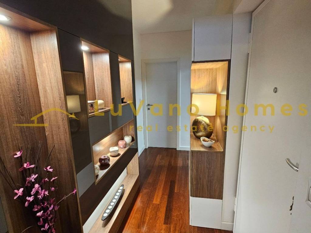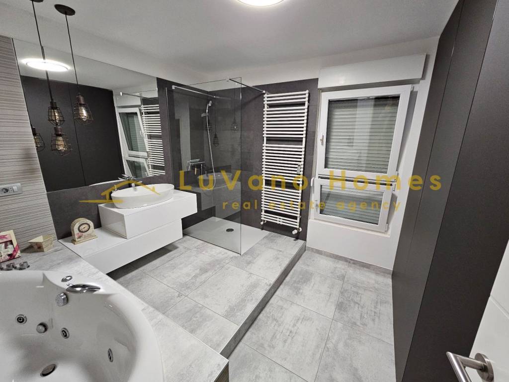 We offer for rent a beautiful and luxuriously decorated, fully furnished one-bedroom apartment with a living room, covering an area of 60 m². The apartment consists of an entrance hallway, a lovely and sunlit living room with a kitchen and dining area, from which there is a panoramic view of the entire Kvarner. Other rooms include a separate toilet and a spacious luxury bathroom equipped with a hydro-massage bathtub and a shower cabin, as well as a spacious bedroom with a double bed, which includes a walk-in wardrobe for clothes and shoes. The apartment is furnished with handcrafted furniture and equipped with all necessary appliances such as a dishwasher, washing machine, dryer, vacuum cleaner, and small accessories like bedding, dishes, and utensils. It also includes flat internet and TV. The apartment is located in a quiet area close to all urban amenities, with a south-north orientation. There is plenty of free parking available in front of the building. Dear clients, visits and property viewings are possible only after signing a Brokerage Agreement. The agency fee is charged in accordance with the General Terms and Conditions: https://luvano.homes/terms