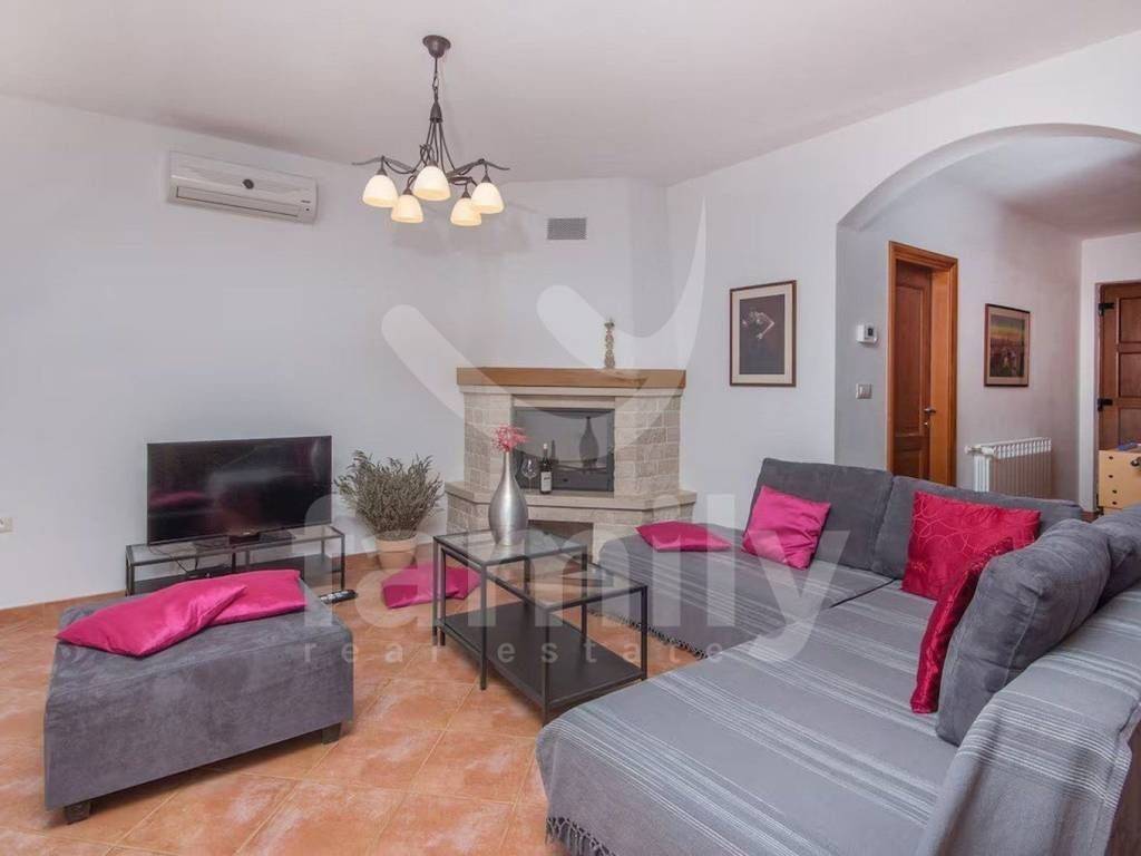 The County of Istria is famous for being one of the most suitable and adequate regions for life, and offers many natural beauties supported by a warm Mediterranean climate and a very cordial resident population.This beautiful villa of 175 m2 with a garden of 225 m2 is located in a settlement not far from Filipana. It extends over two floors - on the ground floor there is a spacious living room with a fireplace and table football, a bathroom, a spacious kitchen and a dining area, and an exit to a large terrace with an area of about 40 m2 and a table for eight people, with a view of nature where there is also a swimming pool and an outdoor fireplace. The stairs leading to the first floor are stone, and on the first floor there are three spacious bedrooms, each of which has access to a common terrace of about 40 m2. On the first floor there is also a spacious bathroom with a bathtub, as well as an area for washing clothes. The house has walnut-colored PVC carpentry with double-glazed glass and shutters, and the heating and cooling system is regulated by two air conditioning units, while the possibility of heating is provided in addition to a fireplace and central gas heating, and the gas cylinder is of large capacity and is underground. There is an outdoor storage room and a garage in the garden, from which you can go out into the yard. The exterior of the house is covered with stone and 8 cm thermal insulation, which further increases energy efficiency. The villa has been successfully rented during the tourist season for years.The property is worthy of attention due to its spaciousness, quality, garden that does not require much involvement, two large terraces, view and extremely quiet location, and represents a very lively property for the future owner in terms of enjoying the same in the sense of family, and also for engaging in the catering activity of renting and quick return on investment.FOR ALL OTHER INFORMATION, CALL THE NUMBER: