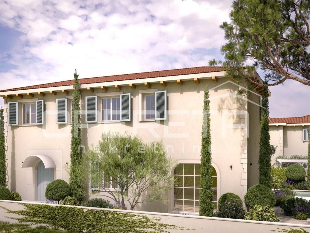 Projekt zamišljen kao velebna vila za odmor s bazenom u francuskom stilu spoja moderne arhitekture i tradicionalnih materijala
