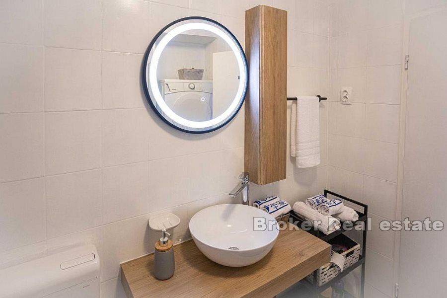 The apartment is located on the second floor of a quiet building without an elevator, with spacious windows and daylight. It consists of one bedroom, kitchen, dining room, living room and bathroom with toilet. The apartment is equipped with all appliances and is rented fully furnished with all appliances such as a washing machine and dryer, two air conditioners, television, etc. Regardless of the fact that the apartment is located in the center, it is in a quiet environment and the noise and bustle of the streets of Split do not come to the fore. Riva and Matejuška are less than 100 meters from the apartment, and the nearest beach is a 10-minute walk from the apartment.