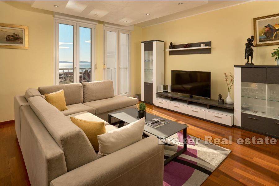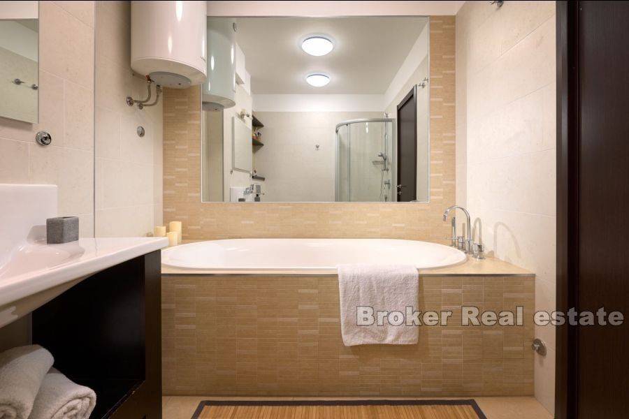 Three bedroom apartment located in a quiet location, on Meje, for long term rent. The apartment is located on the first floor of a residential building in a desirable neighborhood and has a southeast orientation. The apartment extends over 101,10 m² and it also has a loggia of 8,82 m². It consists of a hallway, three bedrooms, a bathroom and a toilet and an open living area consisting of a kitchen with a dining room and living room with an exit to the loggia with an open view of the sea. It is fully furnished and equipped and is rented as such. Heating and cooling takes place through air conditioning. The apartment also provides a garage on the ground floor of the building. In the immediate vicinity there is a shop, a bakery, a school and all other facilities necessary for quality urban living. * Considering the volatility and dynamics of renting, the ad is informative and does not necessarily mean that this apartment is available for rent. For current information, please contact us.