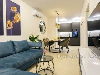 Luxuriously furnished one bedroom apartment for rent in Žnjan with a sea view. The apartment consists of a kitchen, dining room, living room with a spacious terrace with a jacuzzi, which can be included in the apartment, bathroom and bedroom. The apartment is fully equipped and furnished, rented for a long time. It is located in an attractive location near beautiful beaches and all-important facilities. * Considering the volatility and dynamics of renting, the ad is informative and does not necessarily mean that this apartment is available for rent. For current information, please contact us.