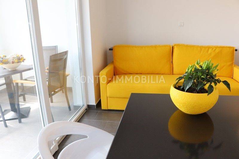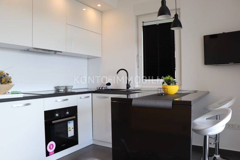 Modern apartment in a new building, on the 1st floor, 40 m2. Consists of a hallway, kitchen with dining room and living room, bedroom, bathroom and spacious terrace. Fully furnished and equipped with all appliances, air-conditioned. Private parking in the building's yard. Only 3 minutes walk from the business center, and only 10 minutes walk from the old town center and the sea. Long-term rental only. The apartment is available from 01.01.2026. Flat-rate monthly utility costs are not included in the rent and amount to EUR 80.00. Two months' rent deposit.