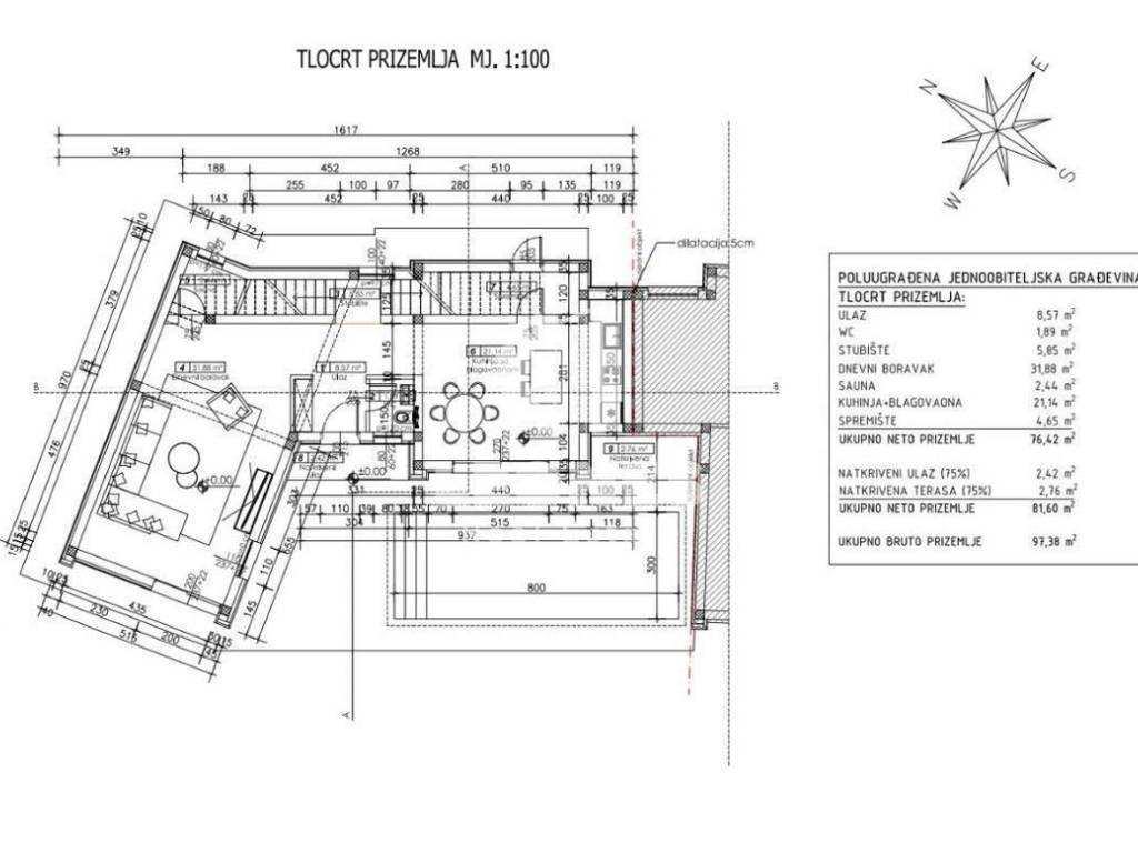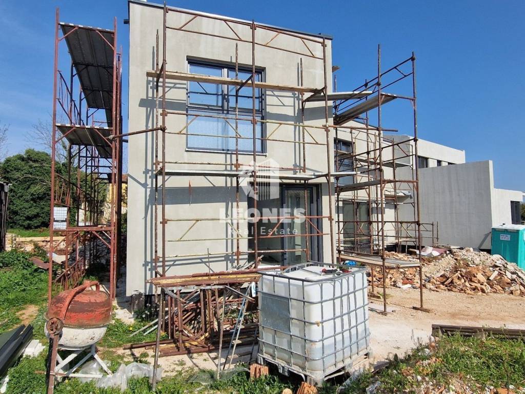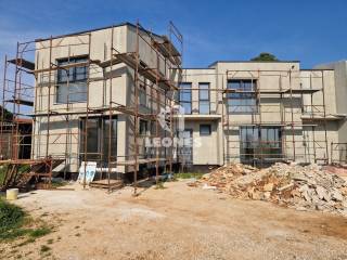 Charming semi-detached house with a sea view and a swimming pool in the vicinity of UmagA charming semi-detached house with a swimming pool and a view of the sea in the vicinity of Umag is for sale. The net usable area of the house is 146 m2 and extends over two floors. On the ground floor there is a living room, a kitchen and a dining room with access to a terrace, a toilet, a storage room and a sauna. Upstairs there are 3 bedrooms, each with its own bathroom and wardrobe. The master bedroom has access to a covered terrace with a view of the sea and nature. There is a 24 m2 swimming pool with a sun deck and 3 parking spaces on the 340 m2 garden.The house is built with high-quality materials, underfloor heating with direct current (12V) and cooling with air conditioners, PVC anthracite carpentry with three-layer glass, mosquito nets and electric blinds. Tiles will be installed in all rooms. The facade will be energy efficient (10 cm polystyrene) which guarantees minimal heating costs and will be clad in stone.Completion of construction is planned for summer 2025.The house is located in an attractive location and is only 700 m from the sea and a beautifully landscaped beach.The price does not include VAT.www.leones-realestate.hr