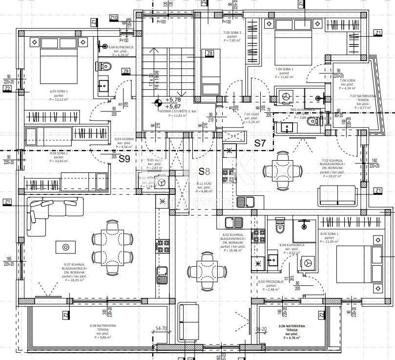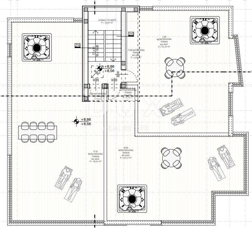 ZADAR, BILI BRIG - Top penthouse with a beautiful view of the whole of Zadar! S8. For sale is an attractive penthouse on the 2nd floor of a modern building with a total of 9 apartments, located in one of the most desirable locations in Zadar - Bili Brig. This quality new building offers a stunning panoramic view of the sea, islands and the entire city, and a special experience is provided by a private roof terrace of 54.88 m2 - the perfect place to enjoy peace and privacy, sunbathing or evening gatherings with the sunset. Apartment S8 consists of a comfortable bedroom, modern bathroom, open living room with kitchen and dining room, covered terrace and additional storage in the basement. The apartment also comes with two private parking spaces. The building is built in accordance with high construction standards - a combination of brick thermal block and concrete walls, while the facade is insulated with 10 cm thick polystyrene, which ensures excellent energy efficiency (expected energy certificate A). The apartment is equipped with aluminum joinery with double-glazed windows, electric shutters and mosquito nets, underfloor heating throughout the entire space and air conditioning in all rooms and the living room. The floor coverings are high-quality tiles, and there is the option of choosing parquet flooring according to the buyer's wishes. The entrance door is burglar-proof and fire-resistant, which additionally ensures your safety and peace. The location is extremely practical - all amenities are within easy reach. Nearby are schools, kindergartens, shops, cafes, pharmacies, sports centers, while the city beaches, the center of Zadar and main roads are only a few minutes' drive away. Bili brig is known for its excellent transport connections and a quiet urban environment ideal for family life or a smart investment. The completion of construction is planned for spring 2026. For more information and to arrange a viewing, please feel free to contact us - this is an opportunity you do not want to miss! Dear clients, the agency commission is charged in accordance with the General Terms and Conditions www.dux-nekretnine.hr/opci-uvjeti-poslovanja ID CODE: 38740 Josip Šestan Agent s licencom Mob: +385 91 799 6986 Tel: +385 91 480 8808 E-mail: josip@dux-dalmacija.com www.dux-dalmacija.com