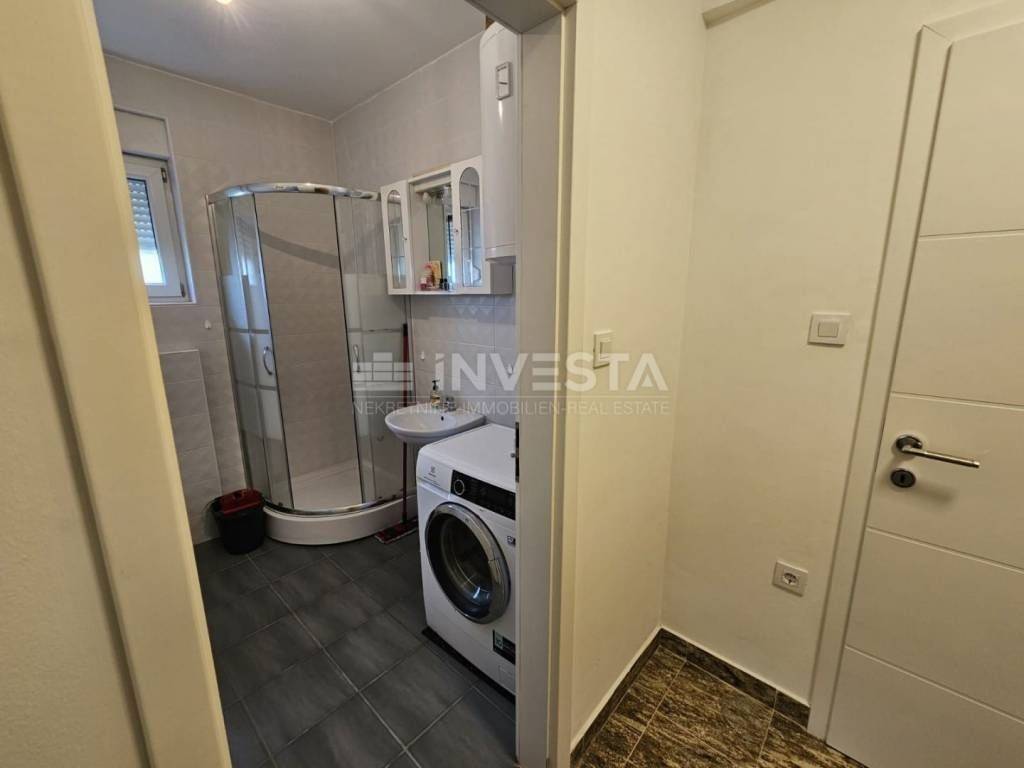 This fully furnished ground-floor apartment in a newer building has a total area of 73.95 m² (including the terrace), with a storage unit and a private parking space. The apartment is located in a peaceful area on a well-maintained street in Valbandon, just a few minutes from Fažana and Pula, and close to the sea and all amenities.