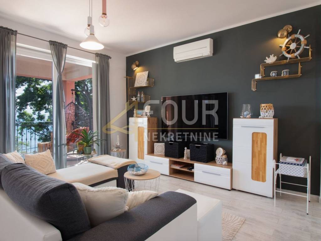 In an attractive and quiet location in Opatija, just 500 meters from the sea, a spacious and well-equipped apartment with a garden, terrace, and open views of the sea and city is for sale.