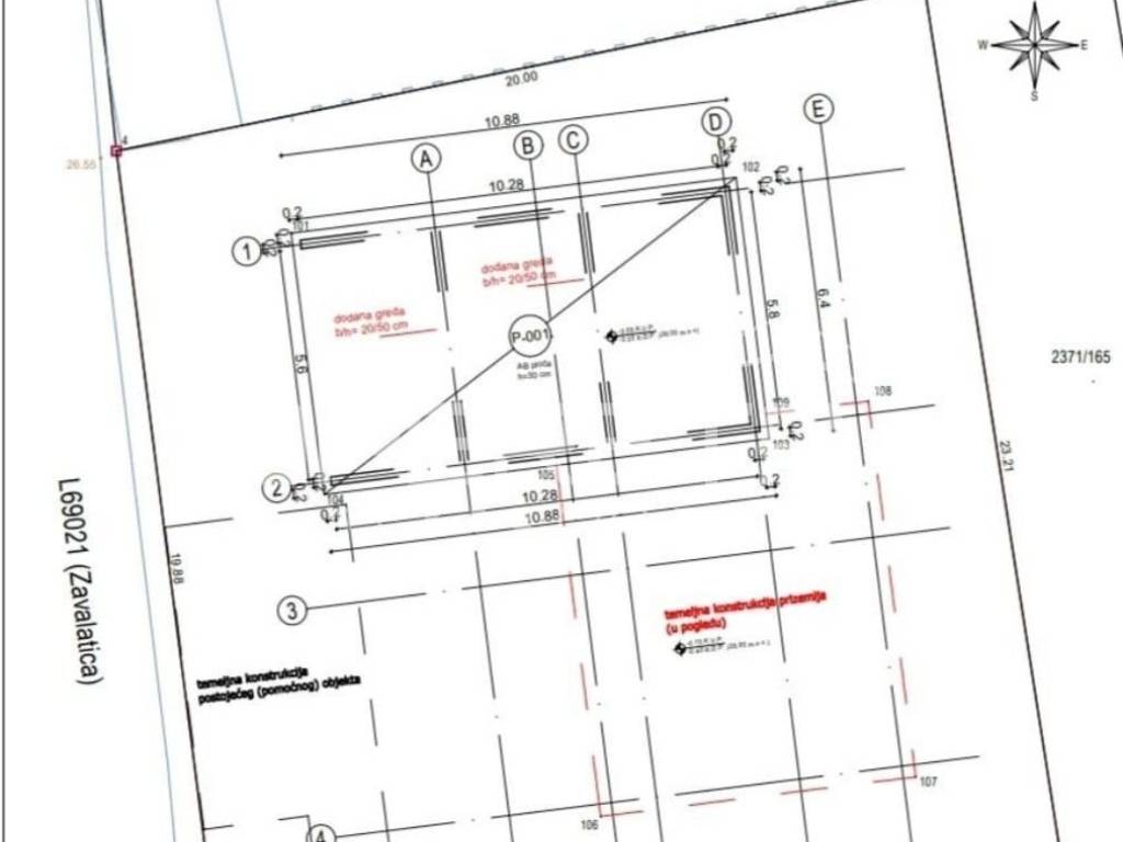 Zemljište se nalazi u izgrađenom dijelu naselja i ima stambenu namjenu. Na parceli je već započeta gradnja, te je izgrađen manji objekt – zatvorena garaža. Za postojeći objekt pribavljena je sva potrebna dokumentacija, a uz zemljište dolazi i izrađen idejni projekt za obiteljsku kuću, kao i valjana građevinska dozvola za nastavak gradnje.