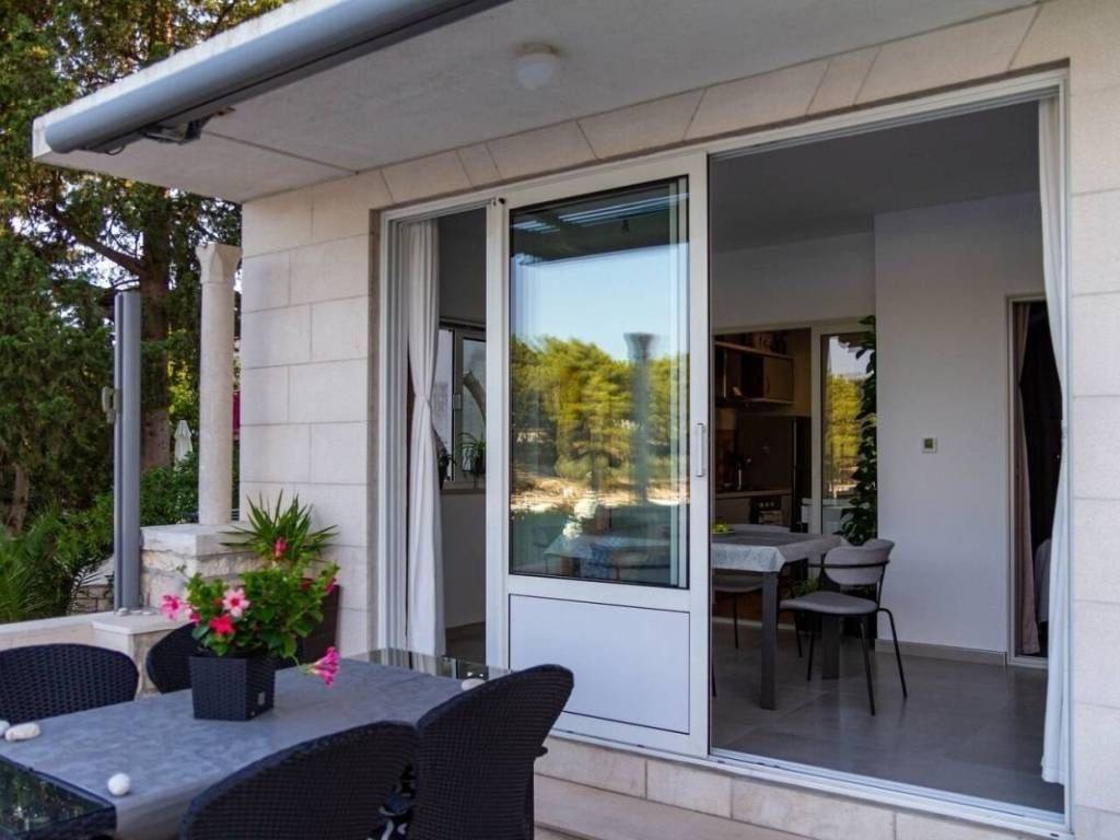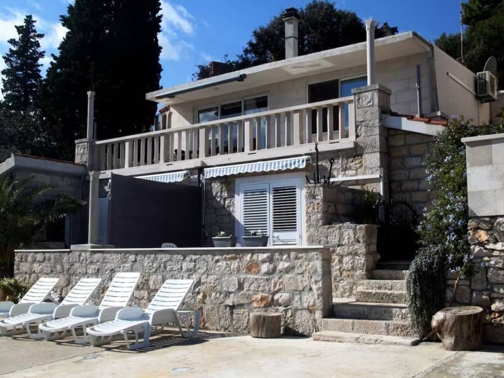 Situated in an exceptional and rarely available location, just steps from the crystal-clear sea and the historic old town of Korčula, this authentic stone villa perfectly combines elegance, privacy, and a prestigious position. The villa comprises two fully furnished and equipped apartments, each with spacious terraces literally on the waterfront – ideal for luxurious family living or high-end tourist rental. On the ground floor, there is an elegant one-bedroom apartment of 45 m², featuring a large private terrace and a spectacular panoramic sea view – a perfect space for peaceful relaxation, also ideal as a guest apartment. Upstairs is a spacious two-bedroom apartment of 97 m² with a modern kitchen, bathroom, and open-plan living area that flows seamlessly onto the seafront terrace. Every detail has been carefully considered – from high-quality parquet flooring, underfloor heating, and air conditioning, to selected ceramics and tastefully coordinated furnishings. The blend of traditional stone features and contemporary design creates the atmosphere of a high-class Mediterranean residence. Terraces with sun loungers, an outdoor shower, and a covered lounge area offer an authentic seaside living experience. One of the property’s unique assets is its location in a peaceful bay, with the possibility to dock your own boat. Behind the detached, newly built house, there is a small 33 m² garden with lemon and olive trees – a charming spot for enjoying nature. Additional potential: there is a possibility to build an additional floor above the larger apartment, further enhancing the property’s value and investment appeal. Whether you’re seeking a private seaside oasis, a premium rental property, or a long-term investment – this villa on Korčula offers it all.