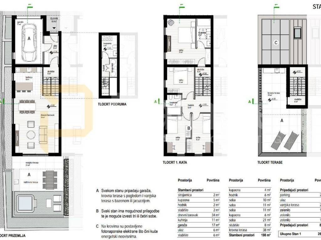 The interior layout is carefully designed for maximum functionality - the apartment includes four spacious rooms and three bathrooms, with direct access from the private garage and additional outdoor parking spaces. A special atmosphere is provided by the large rooftop terrace with sea views, ideal for relaxation, sunbathing, or gatherings at sunset. The outdoor area also features a spacious terrace, perfect for summer relaxation.