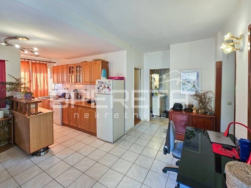 The ground floor apartment includes three bedrooms, a hallway, kitchen, bathroom, and a separate toilet. A special feature of this unit are the unusually high ceilings (3 meters), rare in modern construction, and oversized windows that bring in abundant natural light – hallmarks of traditional Mediterranean architecture.