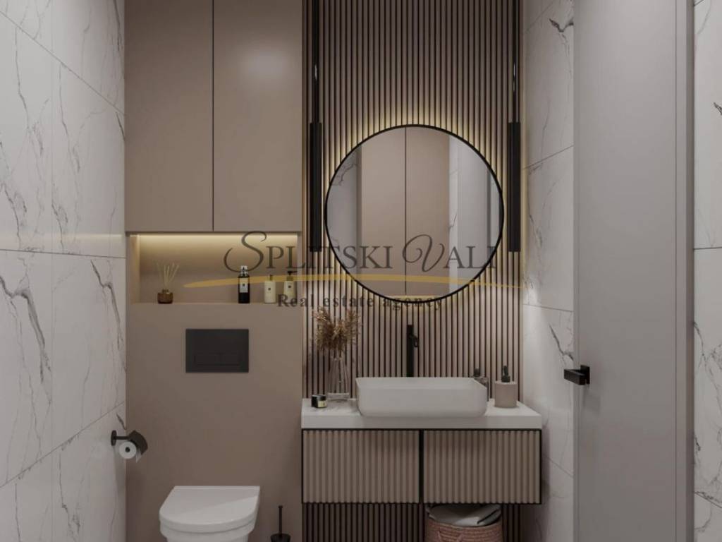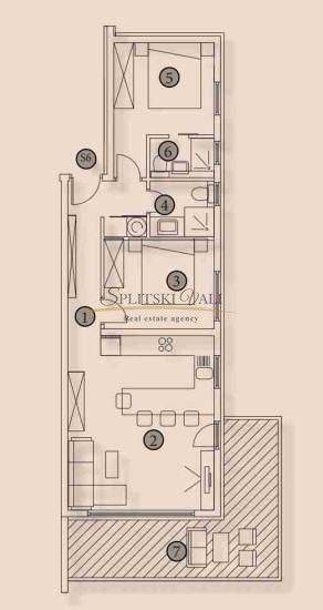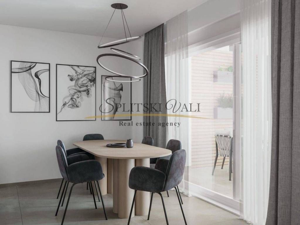Posredujemo u prodaji osunčanog penthousea na drugom katu urbane vile koja se nalazi na Čiovu.Urbana vila je zamišljena kao objekt moderne arhitekture i najkvalitetnijih materijala. Nalazi se u slijepoj ulici bez prometa i buke. Svaki od stanova je izrazito osunčan, idealne orijentacije (istok-jug), s otvorenim, nesmetanim pogledom na more.Stan S6 se sastoji od hodnika, dvije spavaće sobe, dva kupatila, kuhinje s blagovaonicom i dnevnim boravkom iz kojeg se izlazi na terasu. Svaka soba imat će svoju klimu te će u stanu bit provedeno podno grijanje. Stanu pripada krovna terasa površine 74,20m2 i 2 garažna parking mjesta. Stan je namješten i useljiv odmah.Zračna udaljenost do mora iznosi 150 m. Zgradu karakterizira izvrsna povezanost sa svim sadržajima te udovoljava potrebama modernog čovjeka (trgovina, zračna luka, plaža, centar...)Konstrukcija objekta je armiranobetonska i zadovoljava visoke antipotresne standarde stanova. Prilikom izgradnje objekta koristit će se kvalitetni materijali i suvremena tehnologija koju će pratiti energetski učinkoviti sustavi. Vanjsko parkiralište i zajednički prostori bit će pokriveni video nadzorom radi sigurnosti i zaštite imovine svih stanara.Vila ima 9 podzemnih garažnih mjesta iz kojih se do stanova dolazi stepenicama i 3 vanjska parkirna mjesta.Kupac plaća agencijsku proviziju od 2%+PDV.Za više informacija nazovite na broj: 099 497 56 74 - Marina.Razgled nekretnine moguć je isključivo uz potpisani Ugovor o posredovanju, a što je u skladu sa Zakonom o zaštiti podataka i Zakonom o posredovanju i prometu nekretninama.