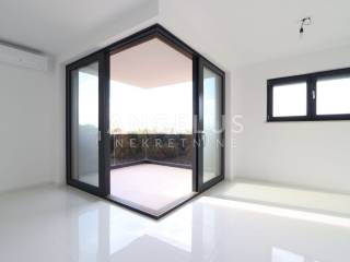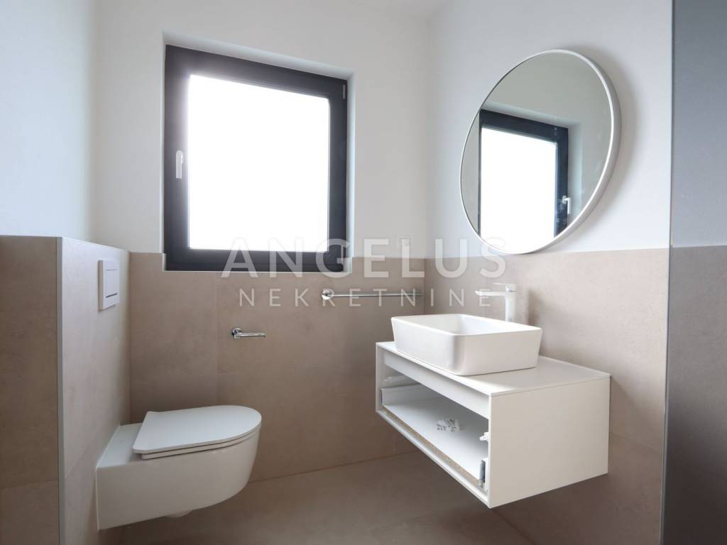 DESCRIPTION: This is a four-room apartment in a new building with a total area of 121 m2. It is located in an excellent location with a sea view, only 1.3 km from the beach and 3 km from the picturesque center of Poreč and the famous Euphrasian Basilica. The apartment offers 3 bedrooms on the first floor, two bathrooms, a storage room (boiler room) and a large living room, kitchen and dining room in an open space concept. On the second floor there is another separate room with a bathroom and a roof terrace offering a sea view.